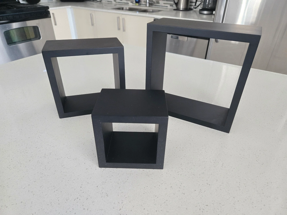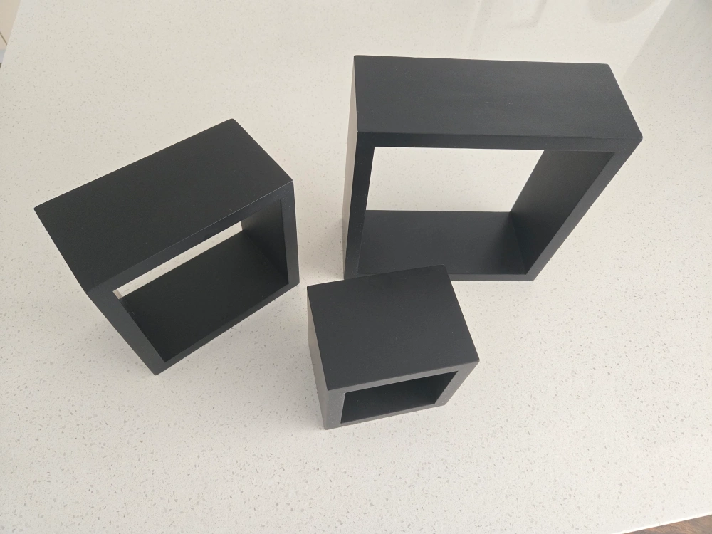 249Selling a set of three cube wall shelves! These shelves are in a sleek black colour and would be a great addition to any room in your home. They're perfect for displaying small plants, books, or decorative items. Get creative with how you arrange them!