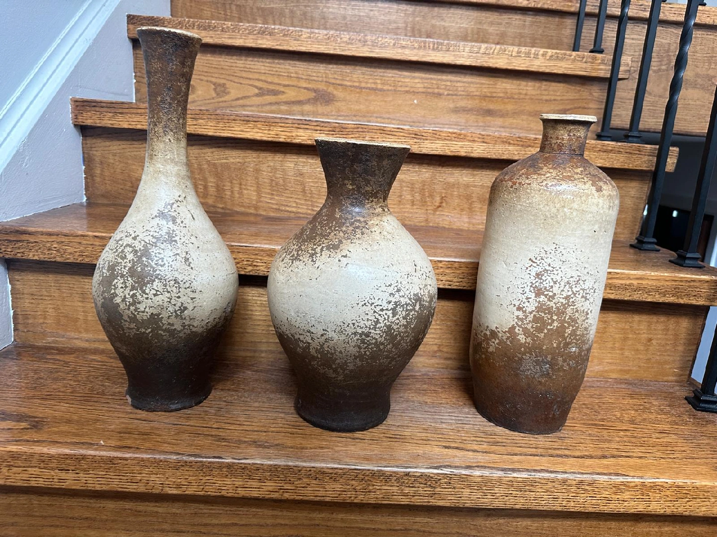 17Selling a set of three decorative vases. They have a unique speckled brown and white design that would look great in any home. Perfect for adding a touch of rustic charm to your decor!