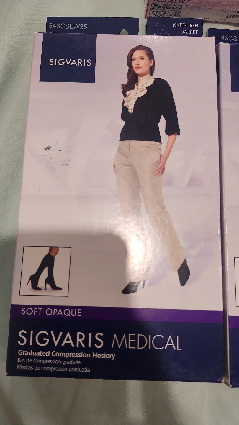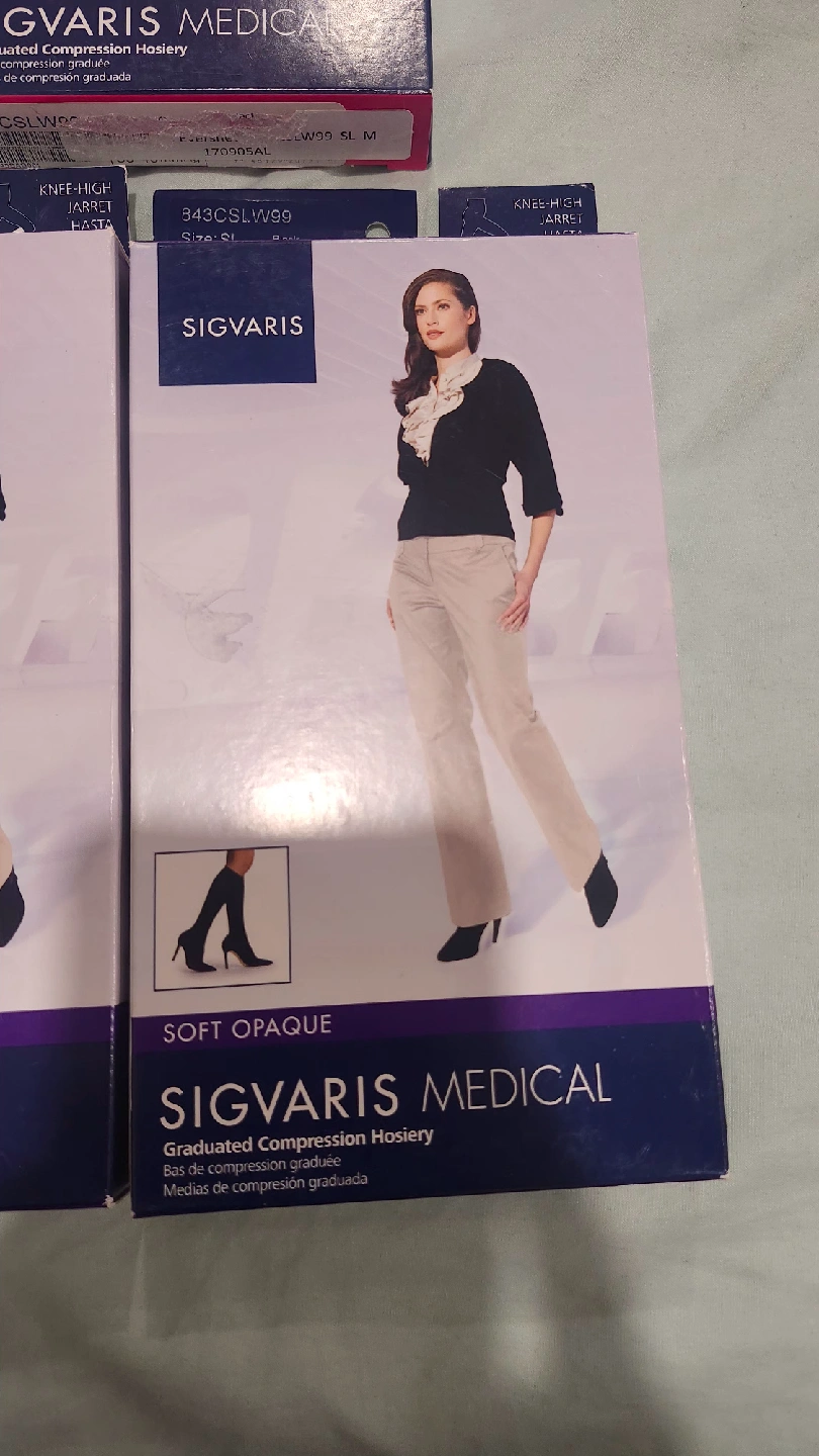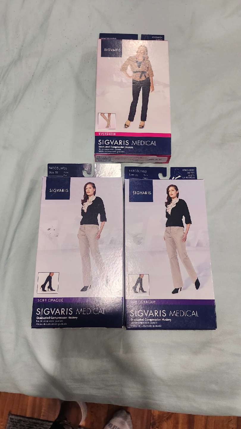 954I'm selling set of 3 Sigvaris Medical graduated compression hosiery. They are soft opaque and size SL. 2 are Available in black. and 1 is Nude shade. They provide 30-40mmHg compression. Great for everyday wear! $10 each or $25 for all 3.