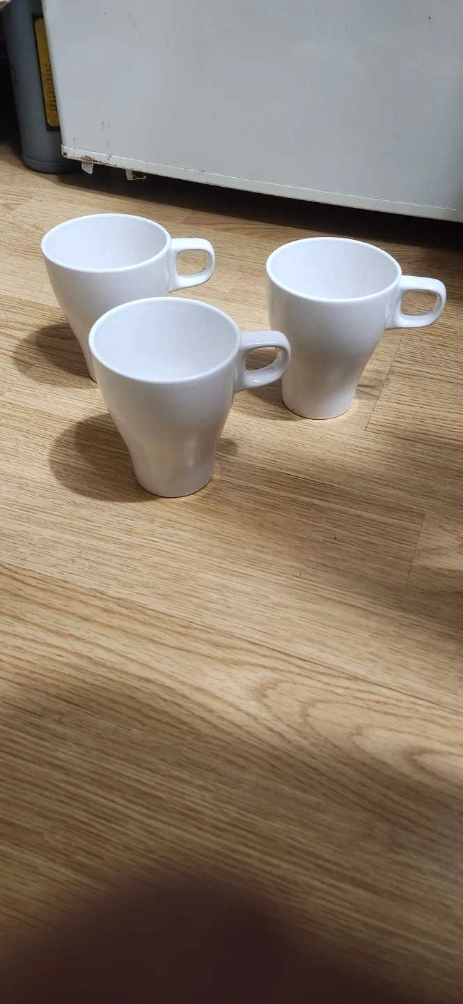 1000+Selling a set of three simple white mugs. They're in great shape and ready for your morning coffee or tea! Perfect for everyday use and easy to clean. Price firm only cash only pickup no delivery 801 O'Connor drive East York, outside TD Canada Trust bank door.