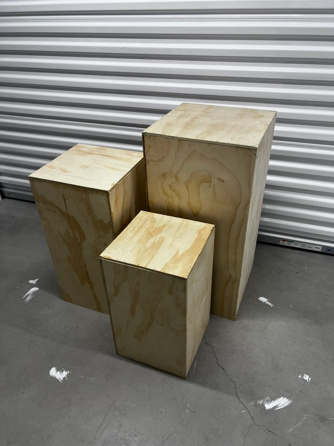 10Selling a set of three wooden display boxes. These boxes are great for adding some height and dimension to your displays, whether you're showcasing products at a market or creating a unique setup at home. They are in good condition and ready to use