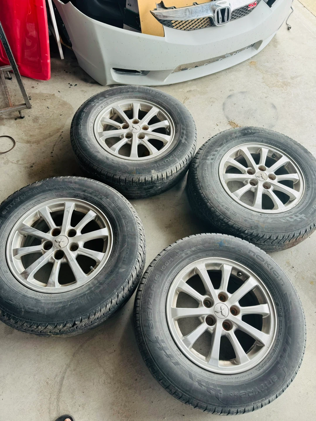 105*114 bolt pattern Mitsubishi OEM alloy rims with summer tires. Will fit Toyota/Honda or any 5*114 bolt pattern model. Coming off from Mitsubishi RVR. I have another set of stunned winter tires on 5*100 rims No more space in garage need to go