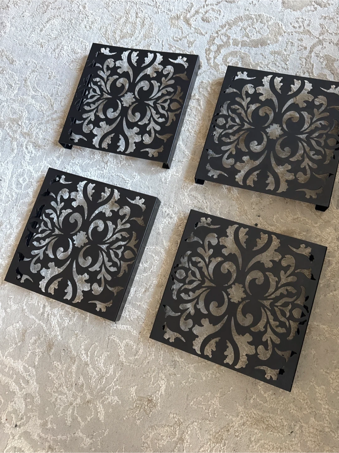 32Selling a set of 4 black metal coasters! They feature a beautiful floral cut-out design. Perfect for protecting your furniture in style