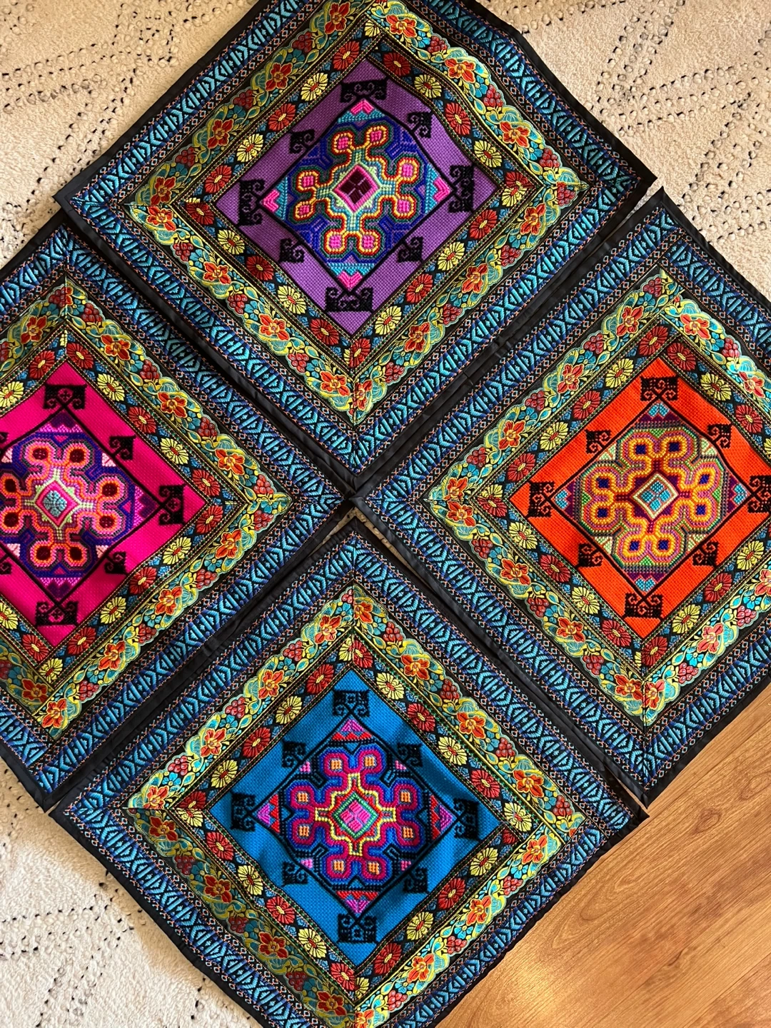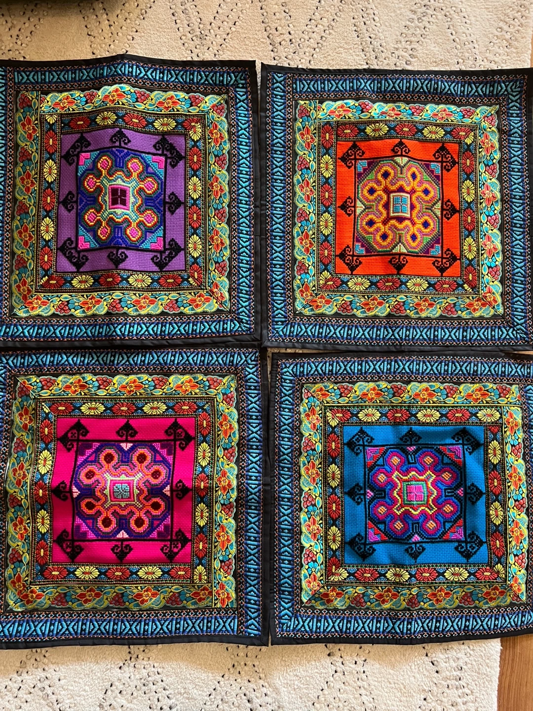 16Here's a set of four brand new vibrant cushion covers to brighten up your space! They feature unique, colourful patterns and a convenient zipper closure on the back. Perfect for adding a pop of colour to your living room or bedroom.