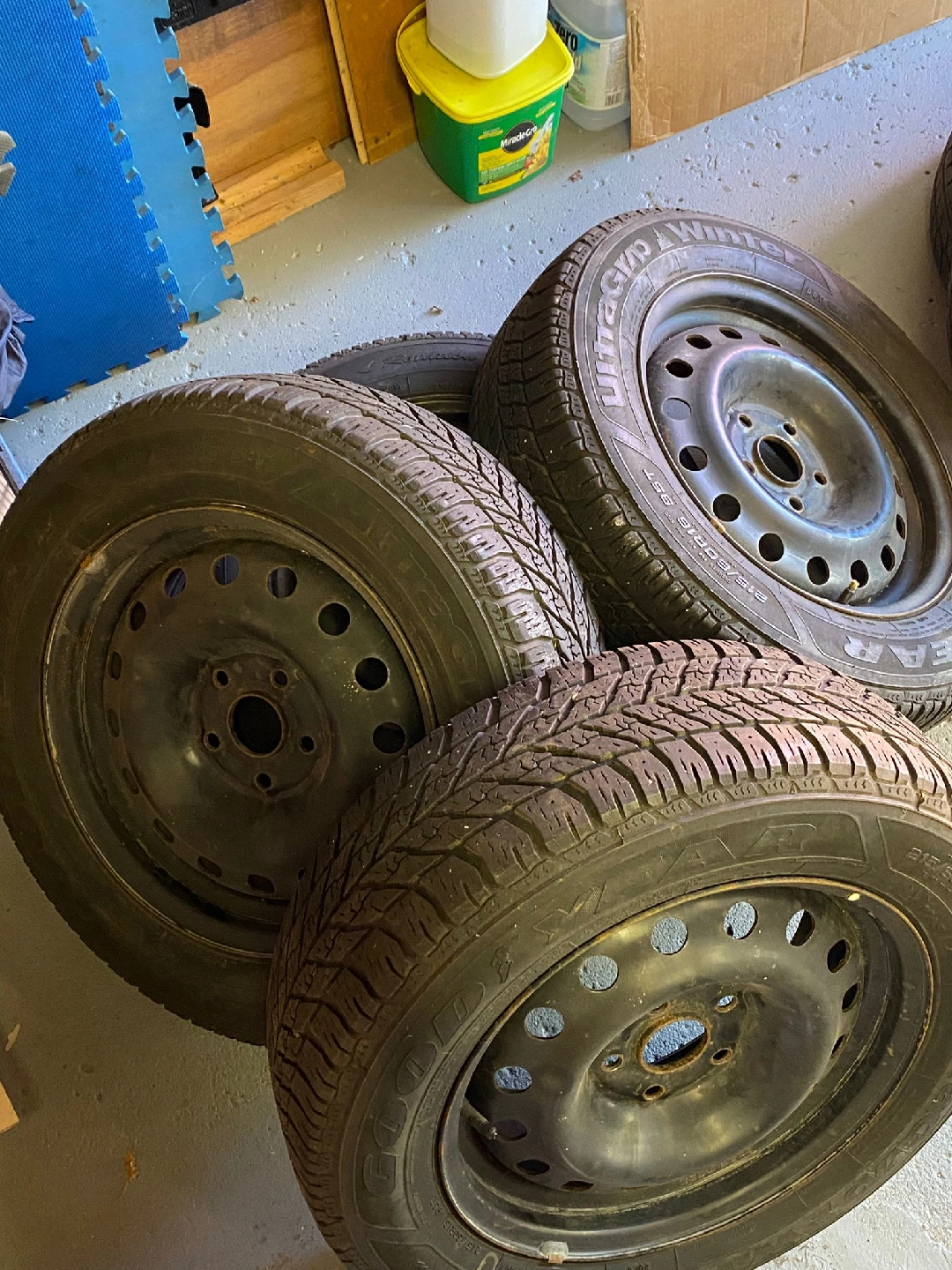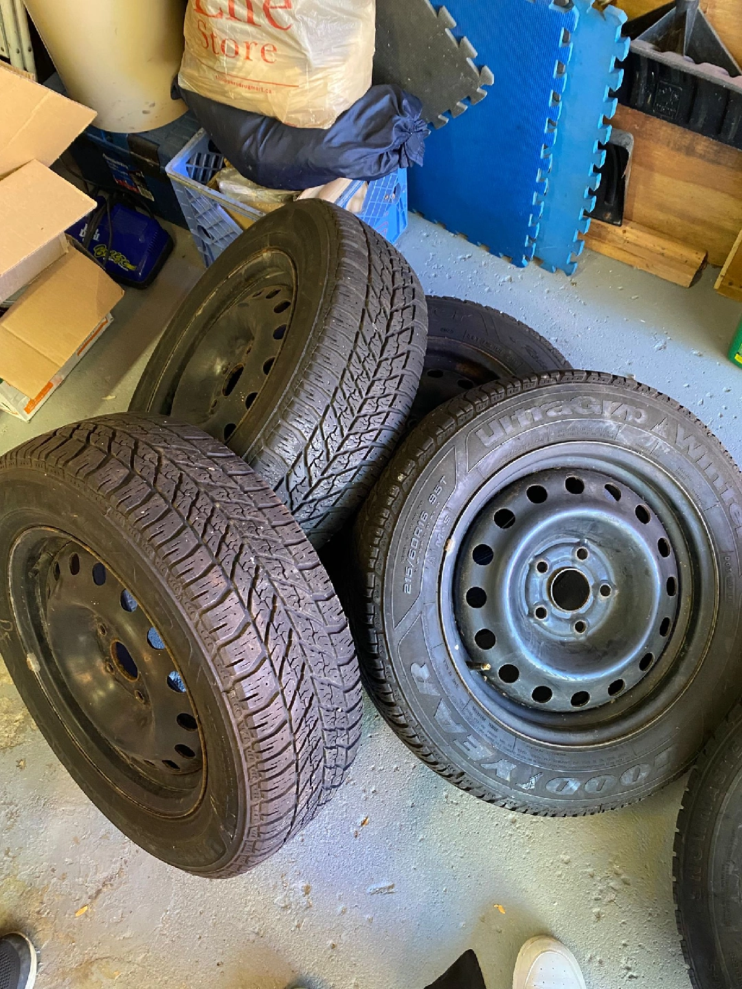 Selling a set of four Goodyear Ultra Grip winter tires. They are in used condition but still have some life left in them. 4 Goodyear 215/60/16 mounted on rims. Was from 2020 Toyota Camry $200.00 all 4 50% of tread left