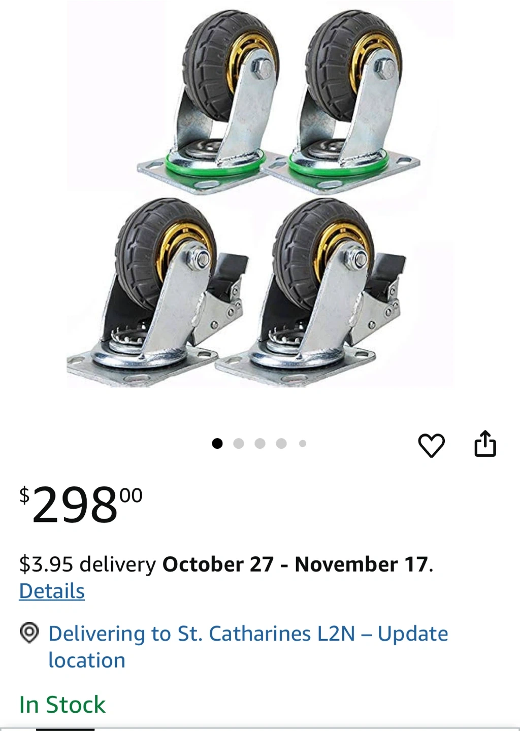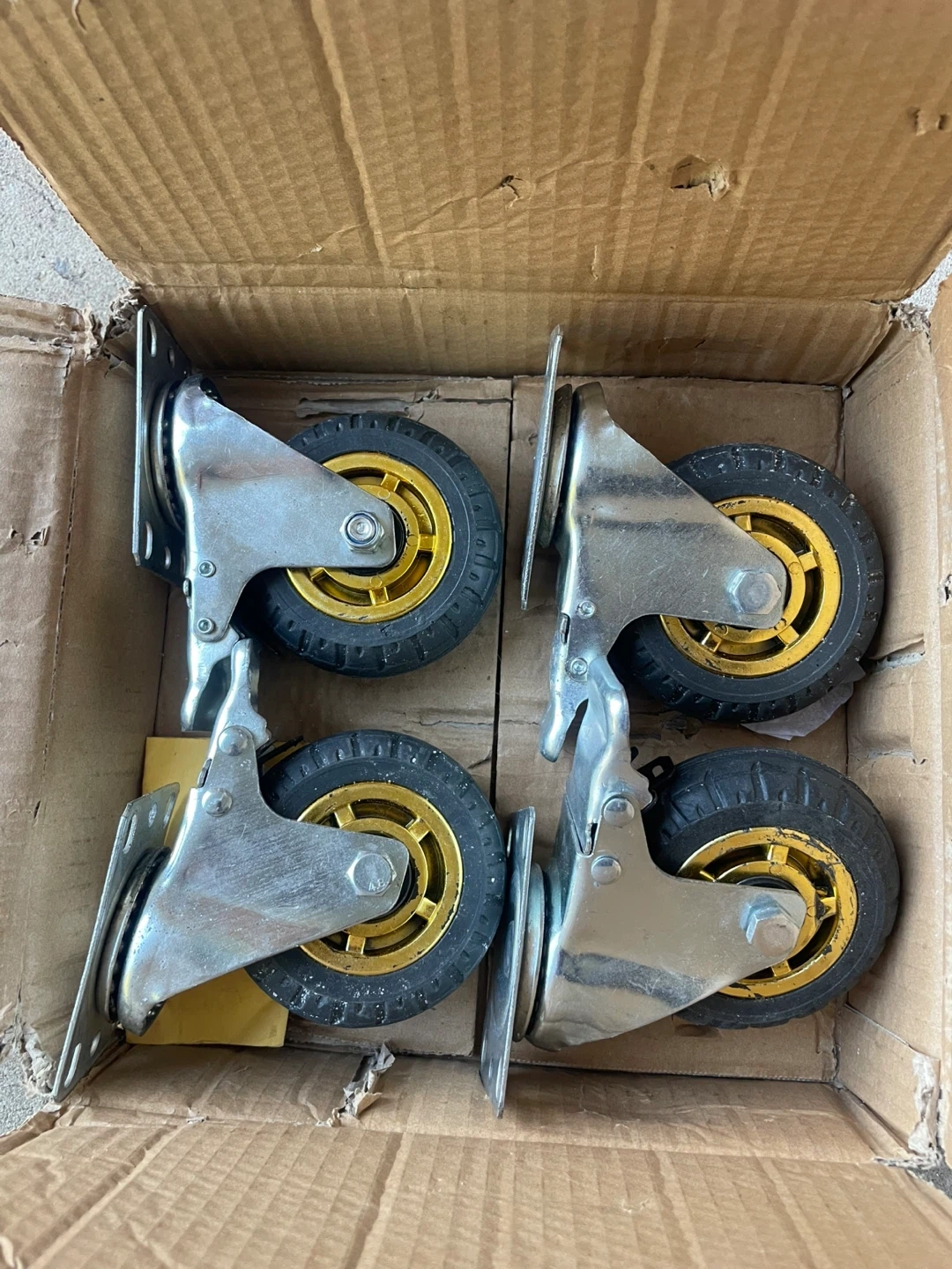 Selling a set of 4 heavy-duty casters! They come in a box for easy transport. These casters are perfect for adding mobility to furniture or equipment. Originally bought for $298