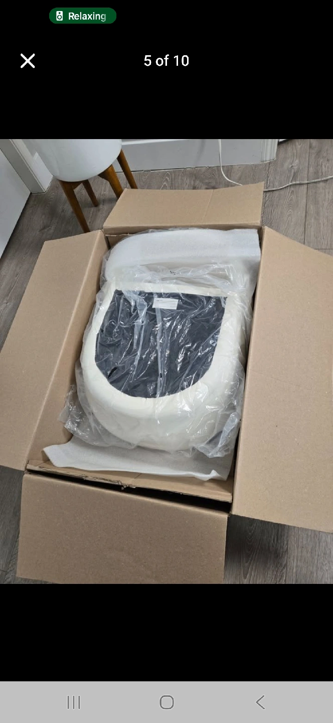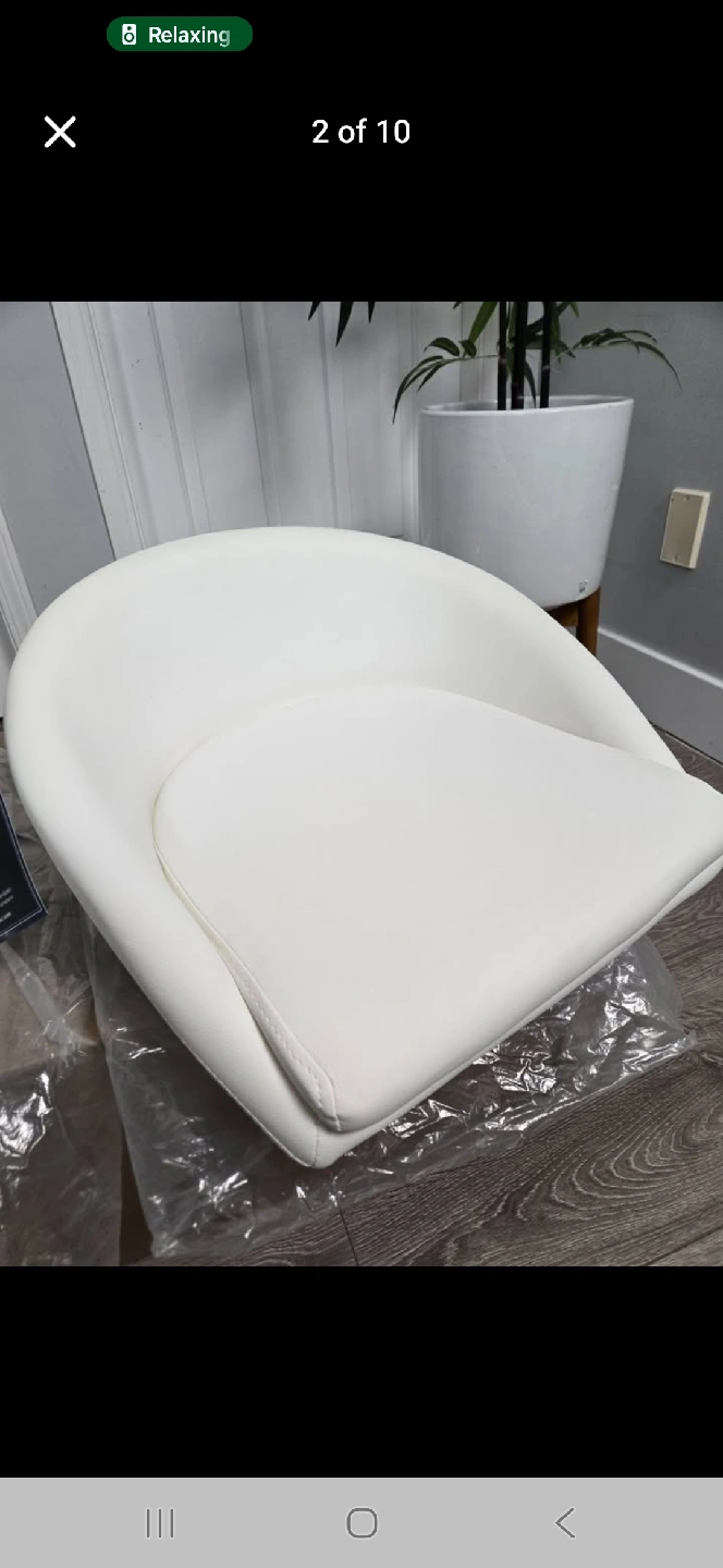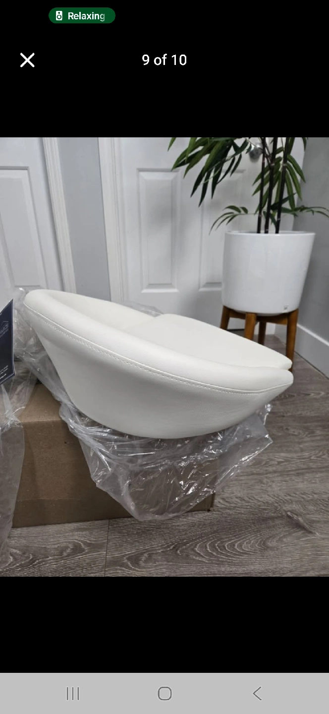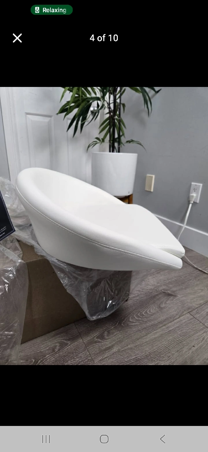 Set of 4 new in box white modern contemporary counter stools. Seat height is 24". Sleek look with white faux leather rounded seats and silver chrome legs. Minor cosmetic imperfections, both pictured. Priced accordingly. $430 firm for the set of 4. Pickup in New West near 22nd Street Skytrain Station. New in box, unassembled. Box opened for photos only. Dimensions: 20.5"D x 20.5"W x 29.75"H
