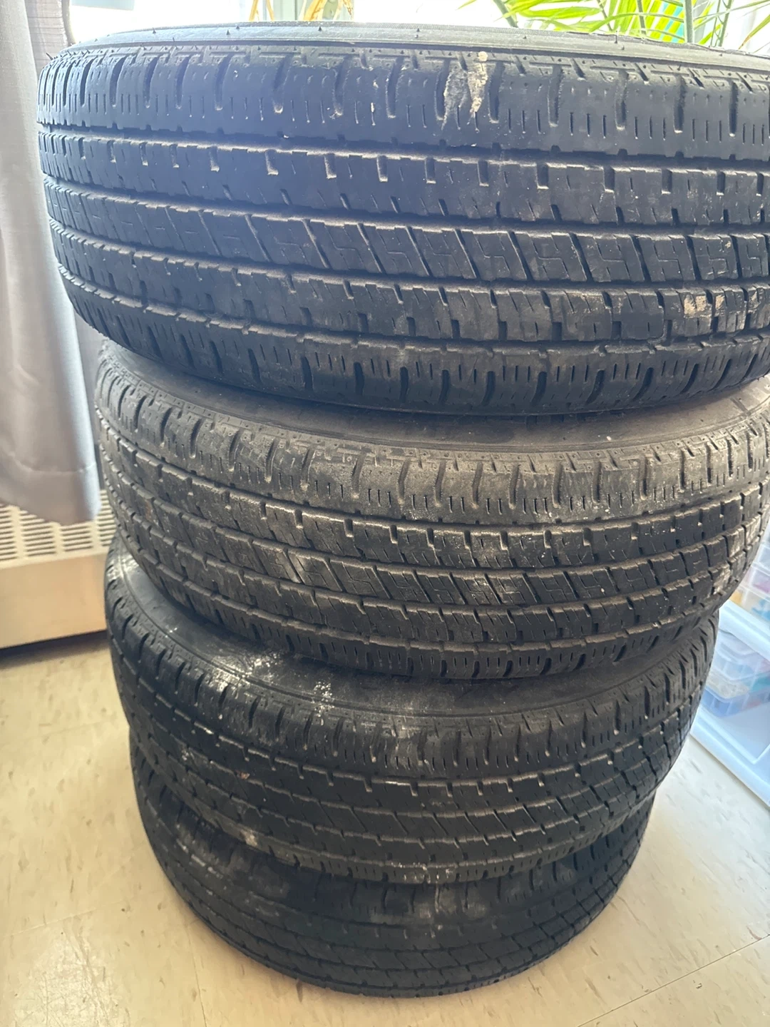 Selling a set of four tires, size P205/65R16. They are used and show some signs of wear, but still have some life left in them. Perfect for someone looking for a budget-friendly set of tires. All 4 tires come with a set of rims.