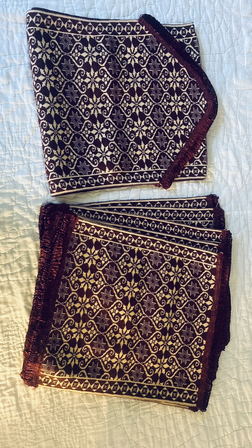 9I'm selling two set of 4 placemats and runners.One set is burgundy and cream, and the other is navy and red with napkins . They would be a great addition to your home! Asking for $20 each sets or best offer