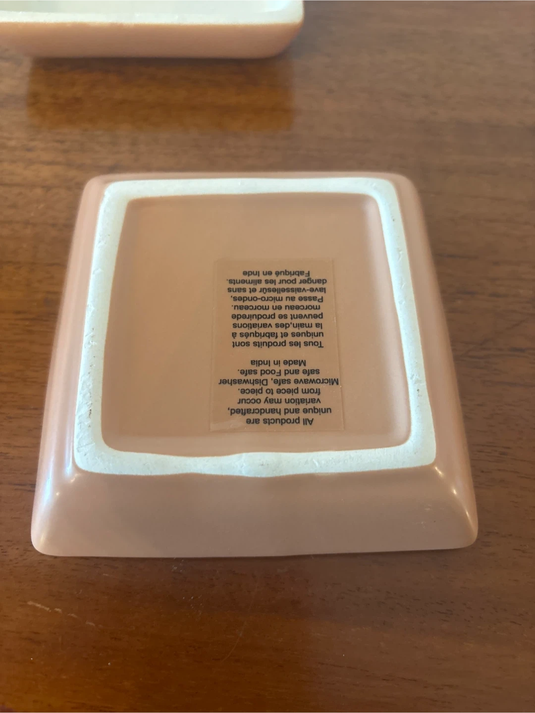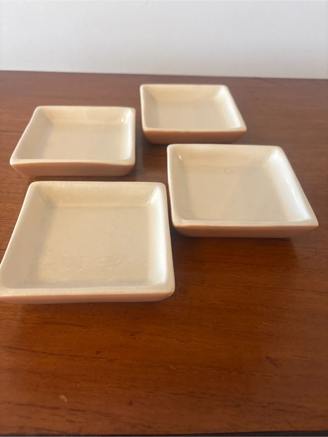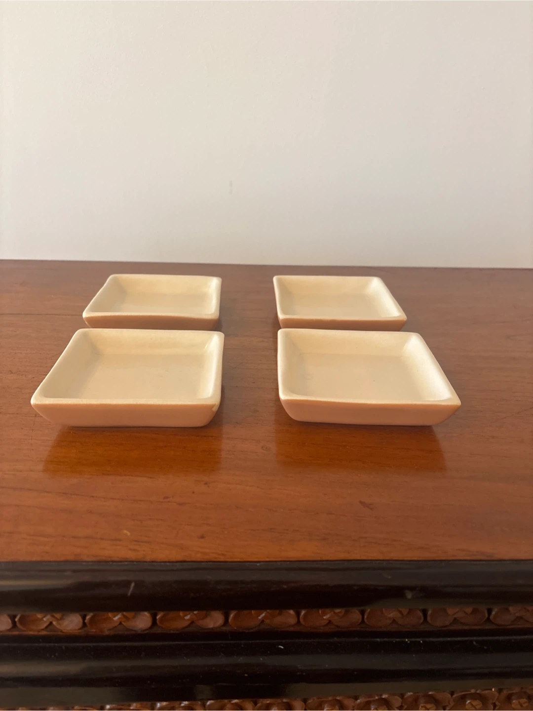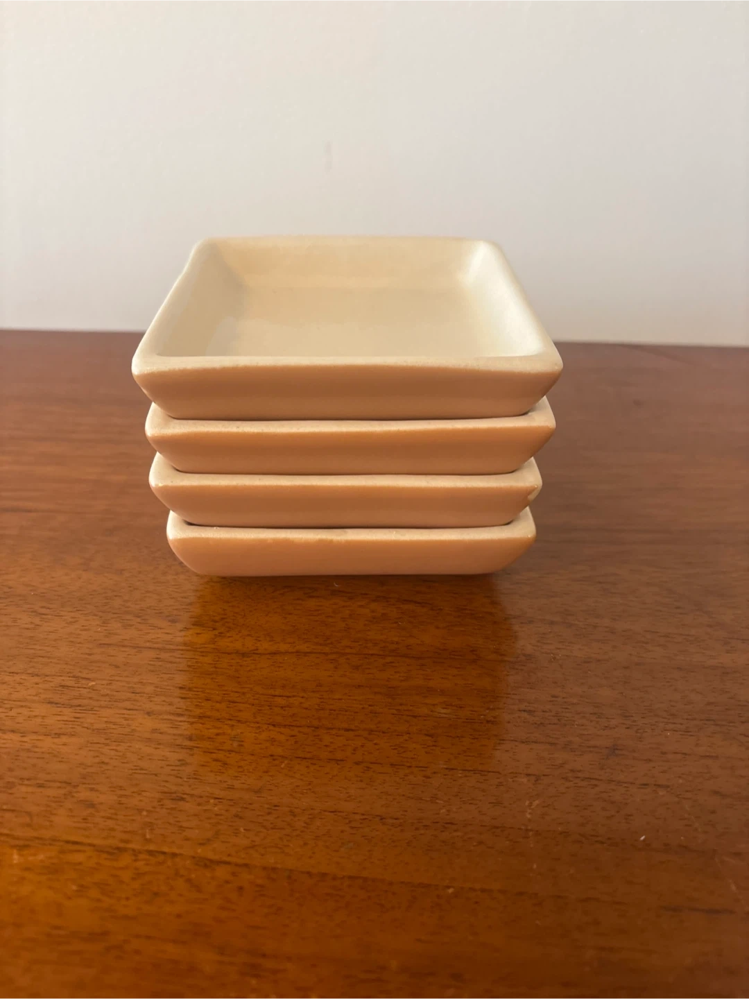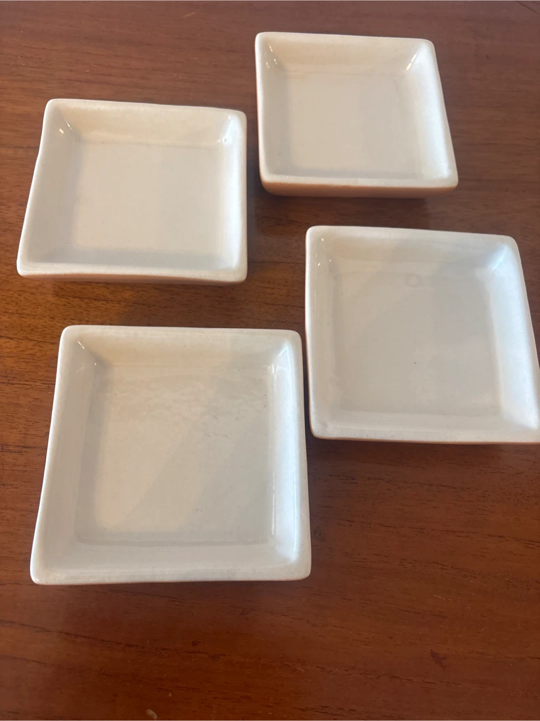 Selling a set of 4 small handmade square ceramic dishes. They are food safe, microwave safe, and dishwasher safe. All products are unique and handcrafted, varying slightly from piece to piece