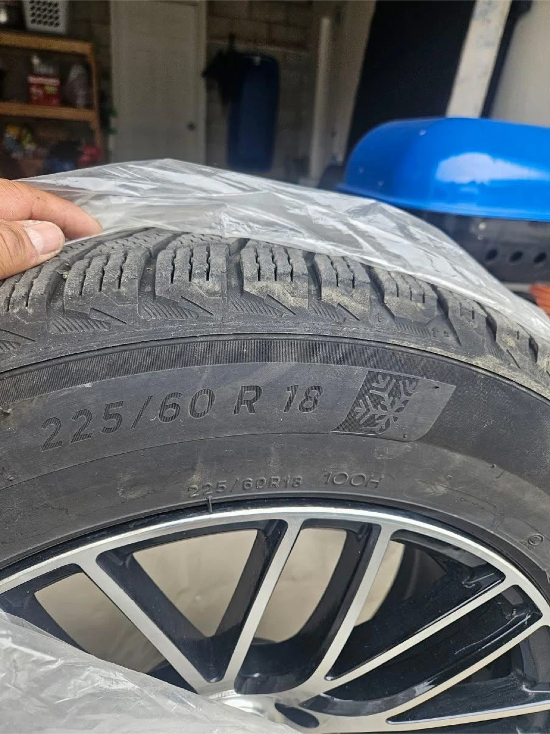 Selling a set of 4 wheels with winter tires. The tires are size 225/60R18. They are in good condition and ready for the winter season!