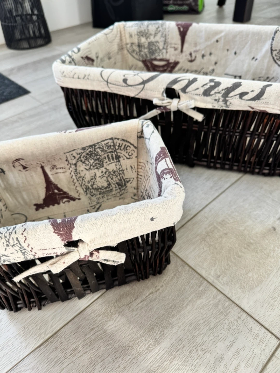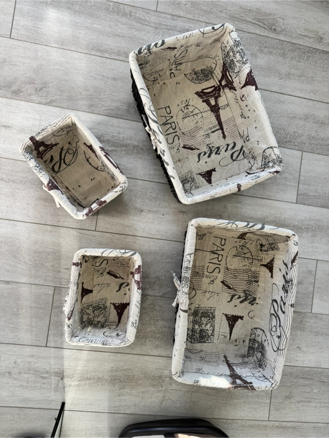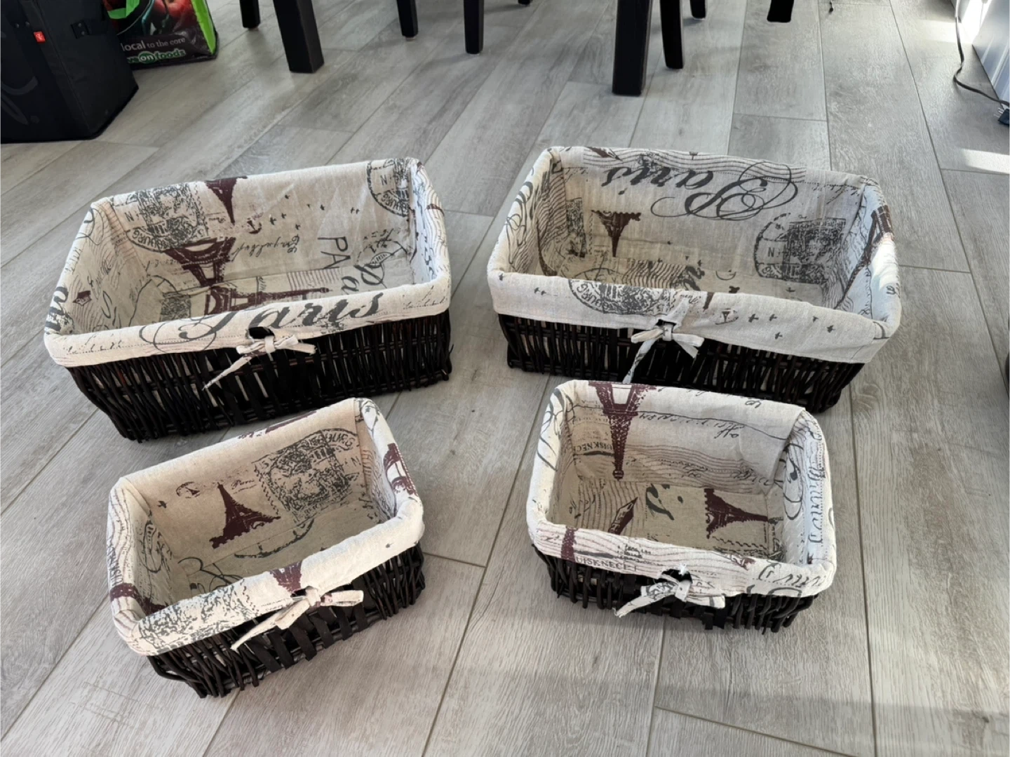 62Selling a set of four wicker baskets, perfect for organizing your home! They come with removable liners featuring a cute Paris-themed design. Great for storage or decor! Can meet in north central dt and terwillegar areas as well!