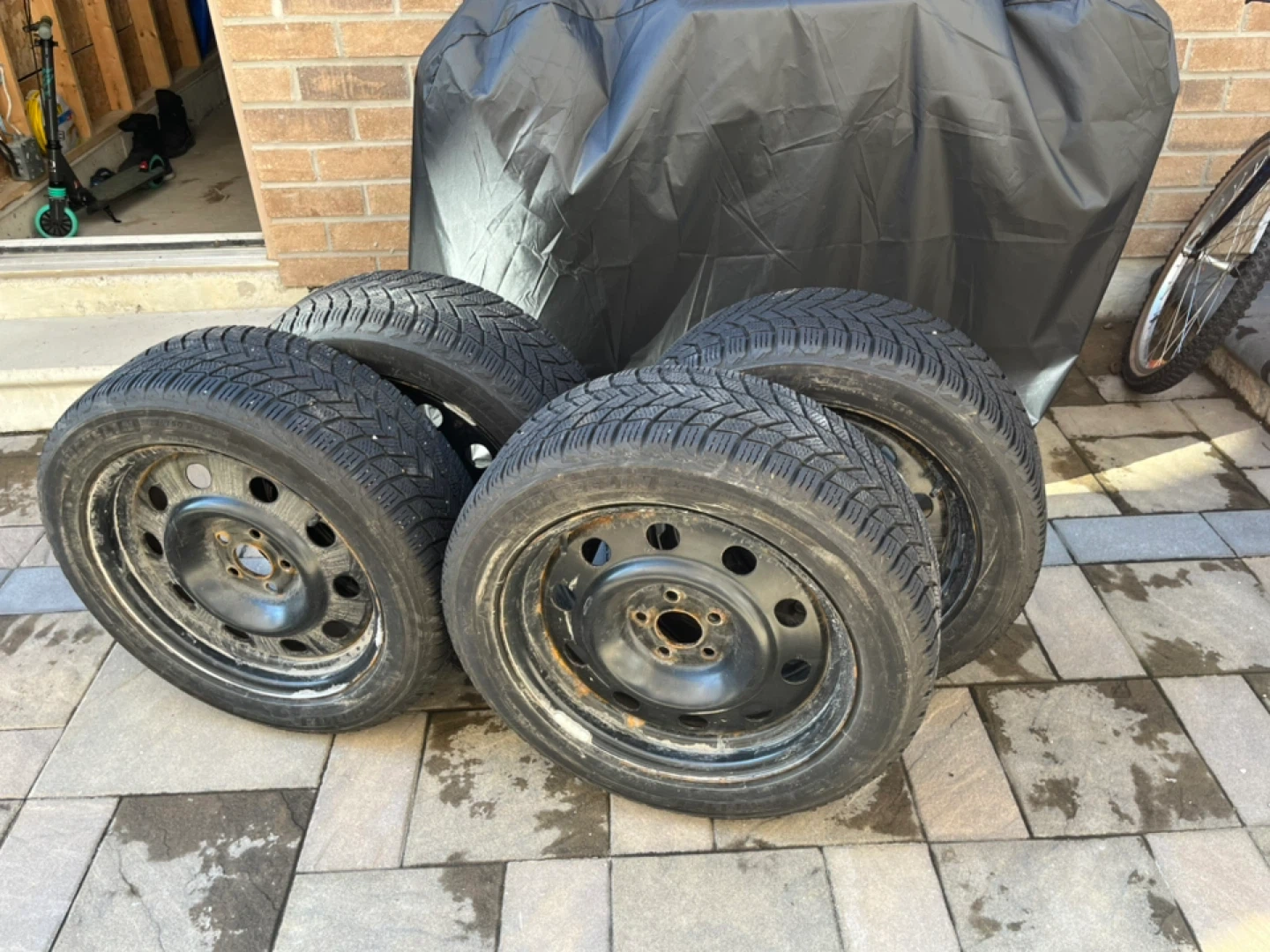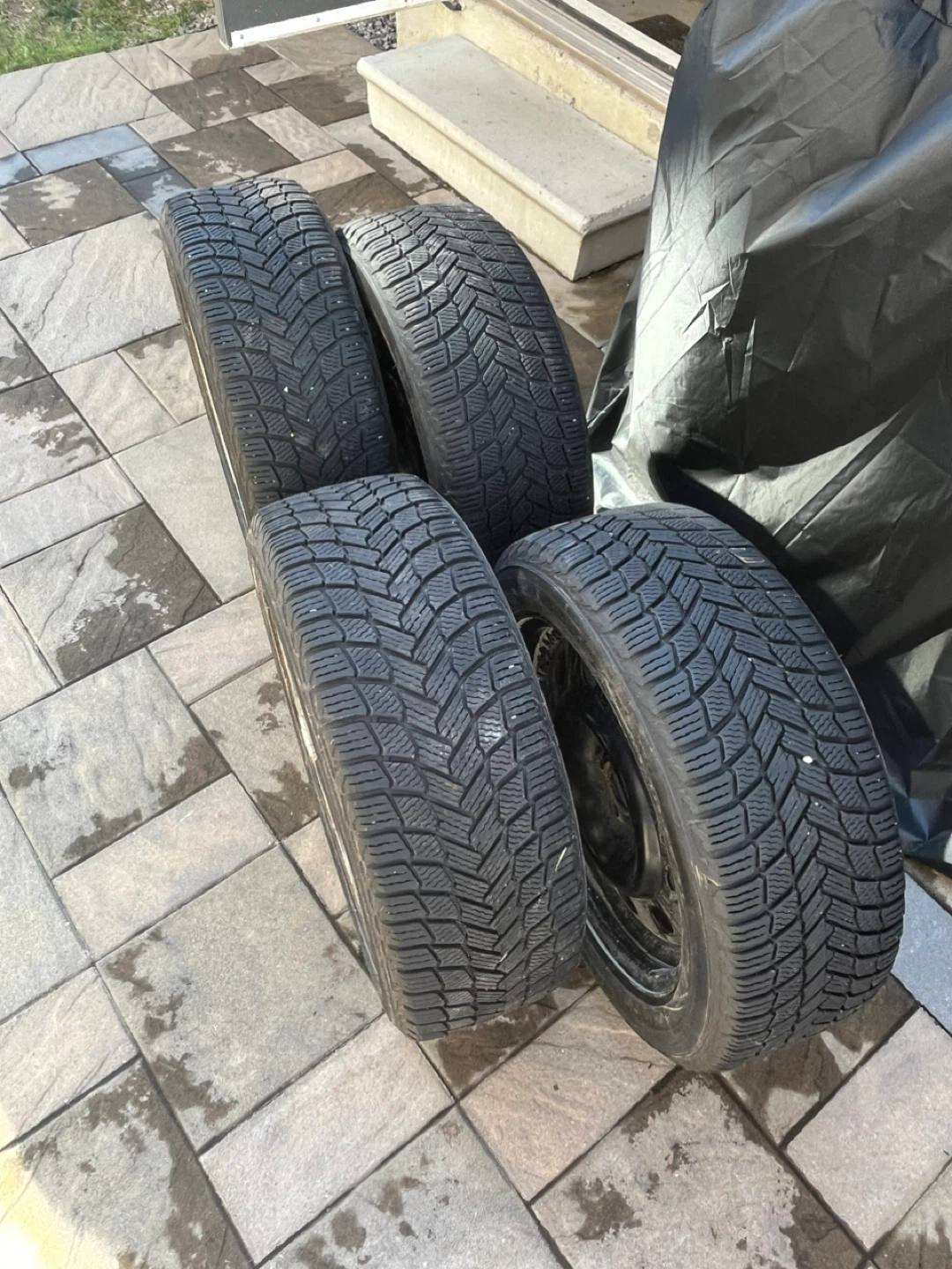 Selling a set of 4 winter tires on rims. The size is 225/50R17. They are Michelin ICE snow tires. Brought from Costco 2022 Winter. Please take a look at the photos for condition