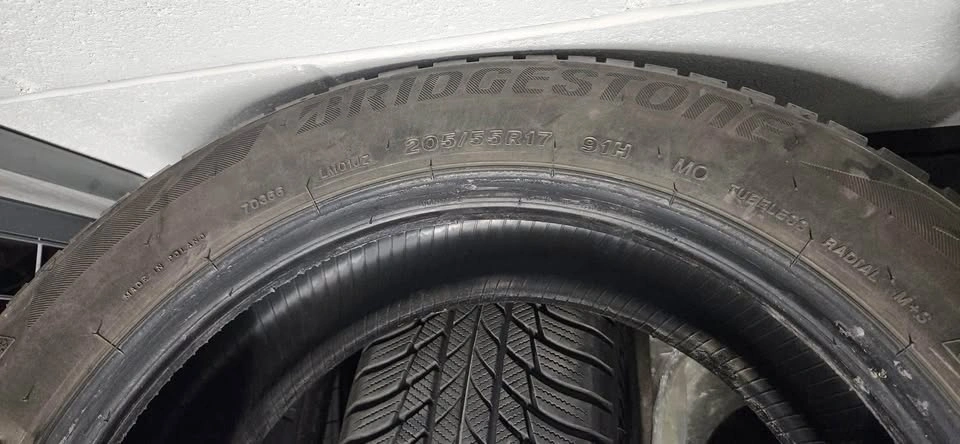 Winter tires in great condition for sale (selling them because we bought a new car). Used only for two winters. Excellent quality, one of the best in the market! Specifications: -Ideal for Nissan Kicks, but can be used for a similar car. -Brand: Bridgestone -Model: Blizzak LM001 205/55R17 BW 91 12437
