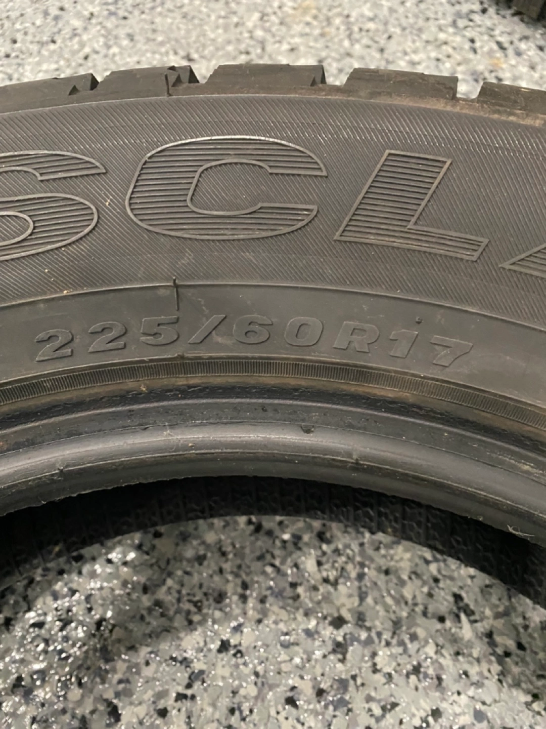 Set of 4 winter tires, size 225/60R17. Great condition. Used for one season only.
