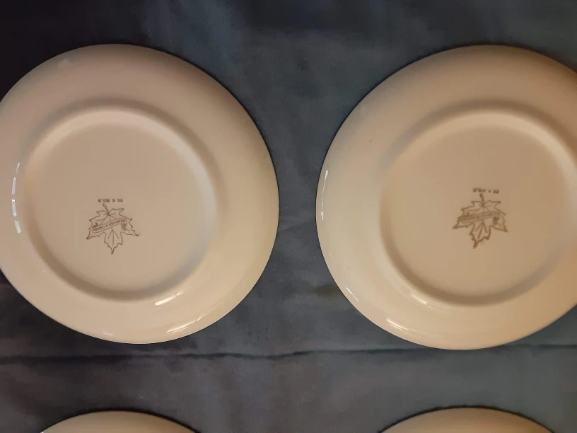 321Selling a set of six Royal Vale plates, each featuring a different fruit design. They have a lovely gold trim. Perfect for adding a touch of vintage charm to your table!