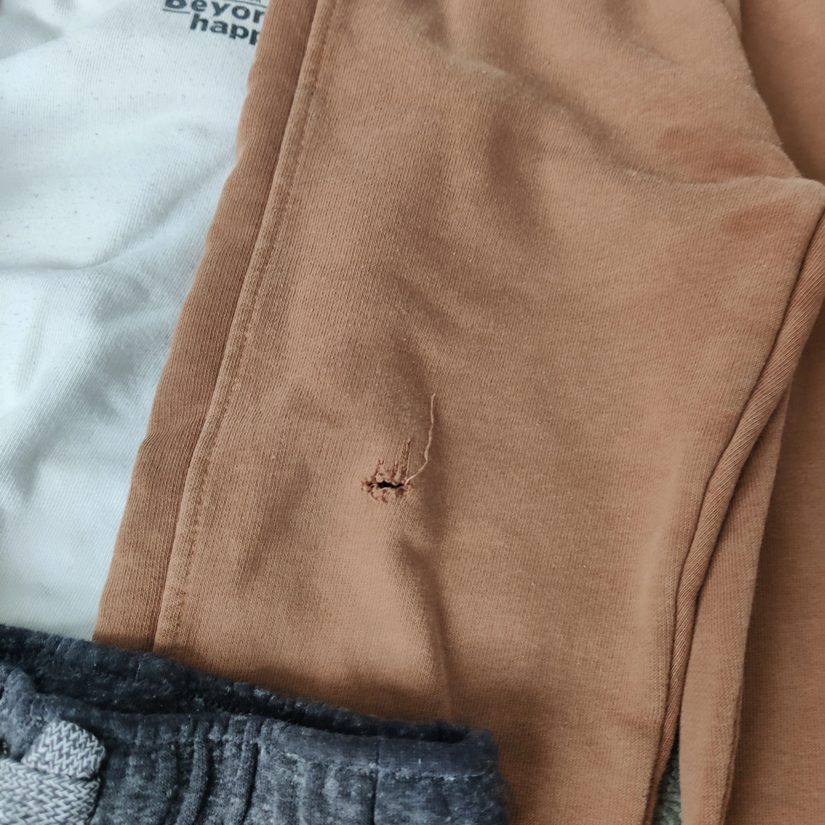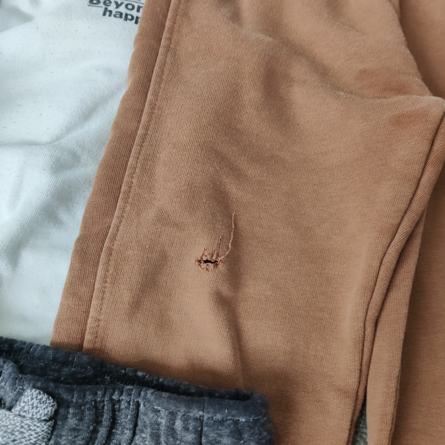 Cream brown blue navy green dark gray sweatpants and jogger set Only 2 of them has little holes on their knees Rest is in good used condition