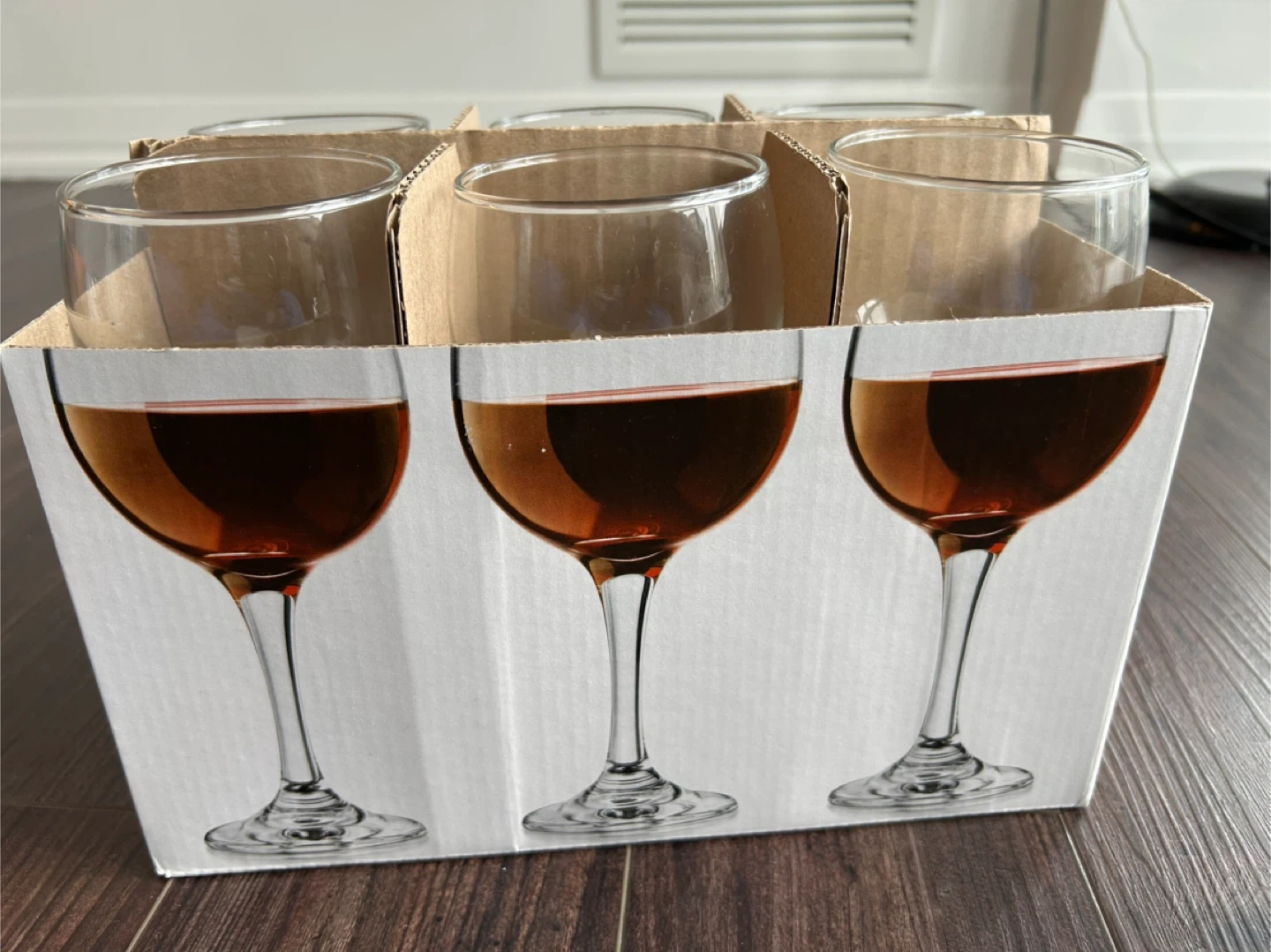 Selling a set of 6 wine glasses, perfect for entertaining or enjoying a glass of wine after a long day! They come with the original box, making them easy to store or transport. They are in great condition and ready for a new home Capacity : 10oz per glass