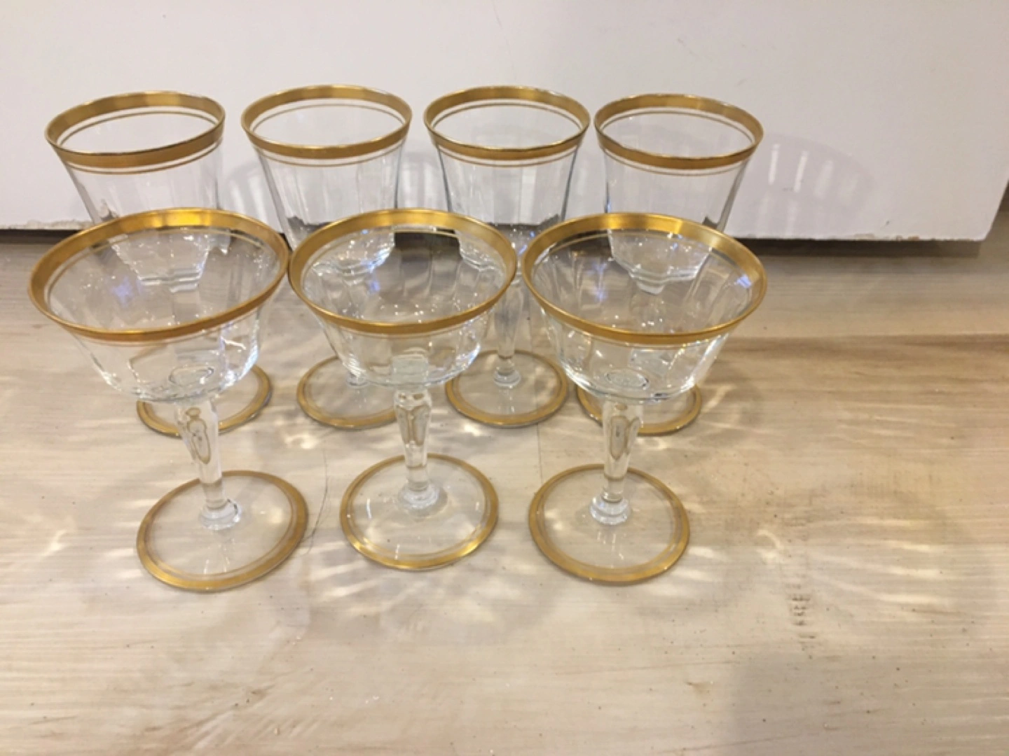 Set of 7 Vintage Gold Rimmed Cocktail Glasses
