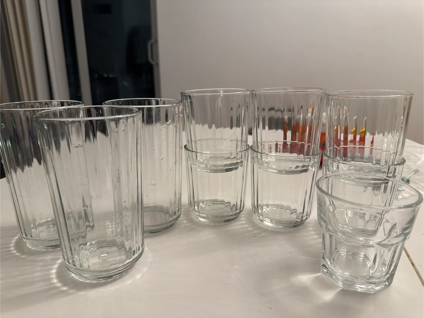 10Selling a set of 9 clear drinking glasses. They're in great shape and ready for a new home!