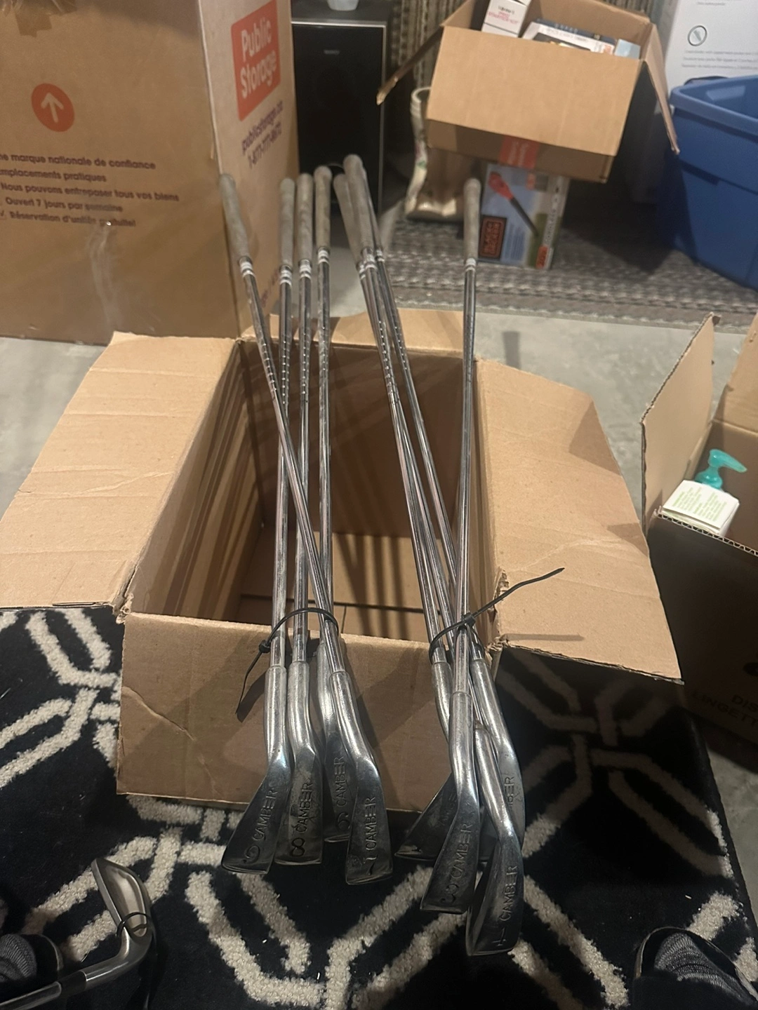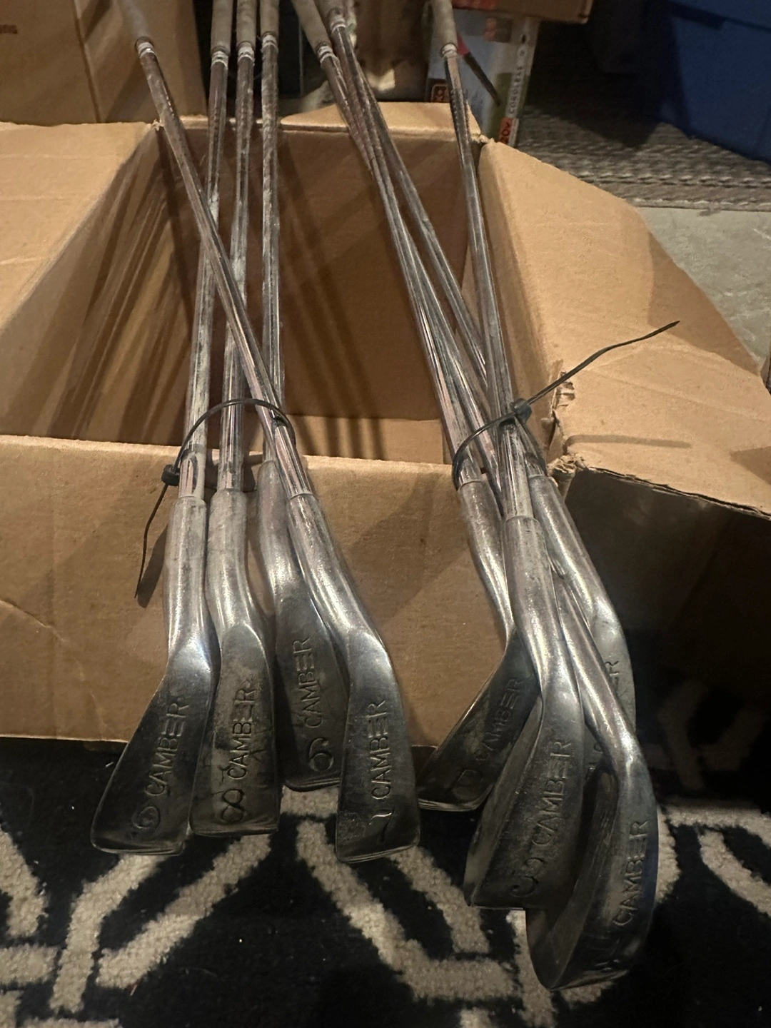 89Set of Camber golf clubs (irons). Includes 3, 4, 5, 6, 7, 8, 9 and PW. Grips are worn.