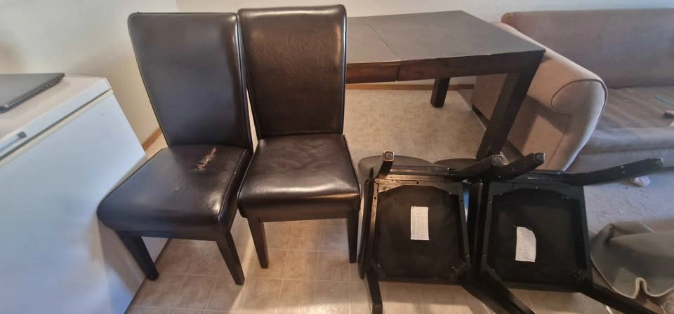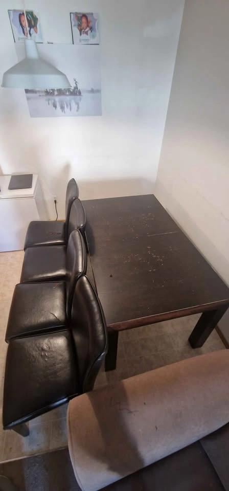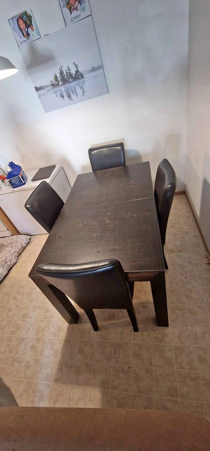 60Set of Adjustable Dinning Table and 4 solid Chairs in a great condition from a Pet Free Home. PICK UP ONLY.