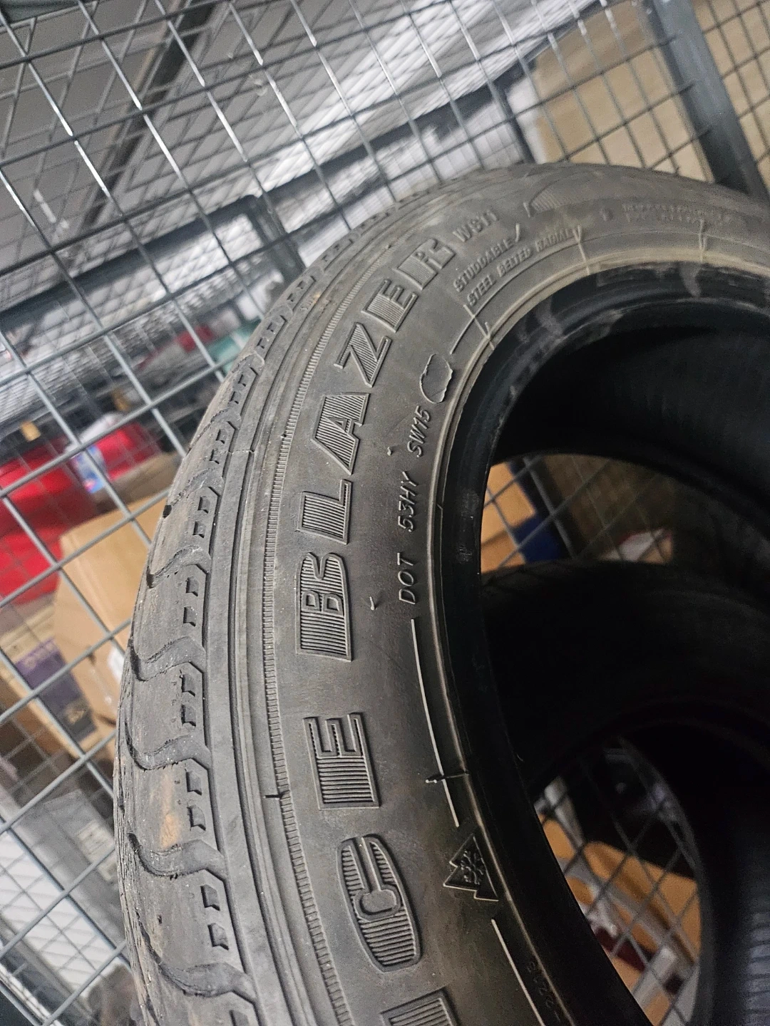 60Selling a set of GT Radial Blazer W/M tires. The size is 175/65R15. They are tubeless and marked with M+S, indicating they are suitable for mud and snow conditions.