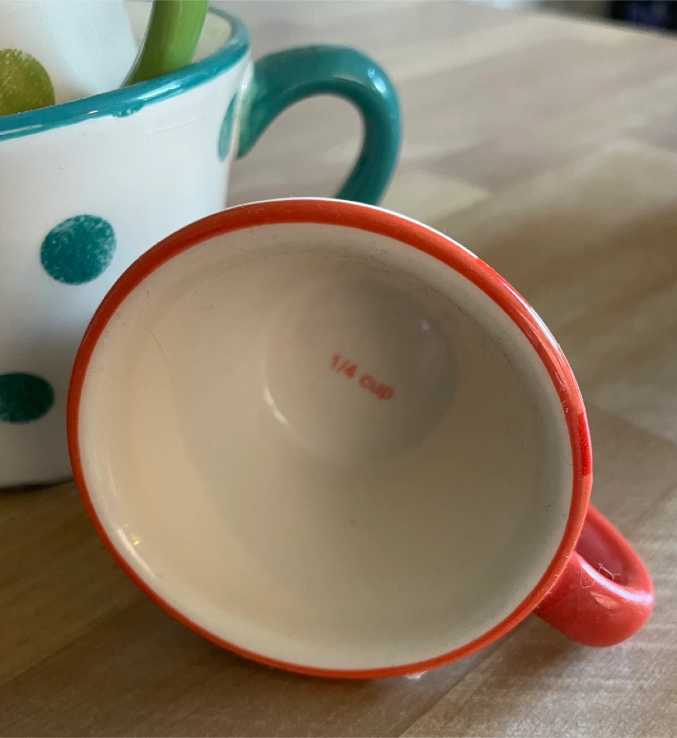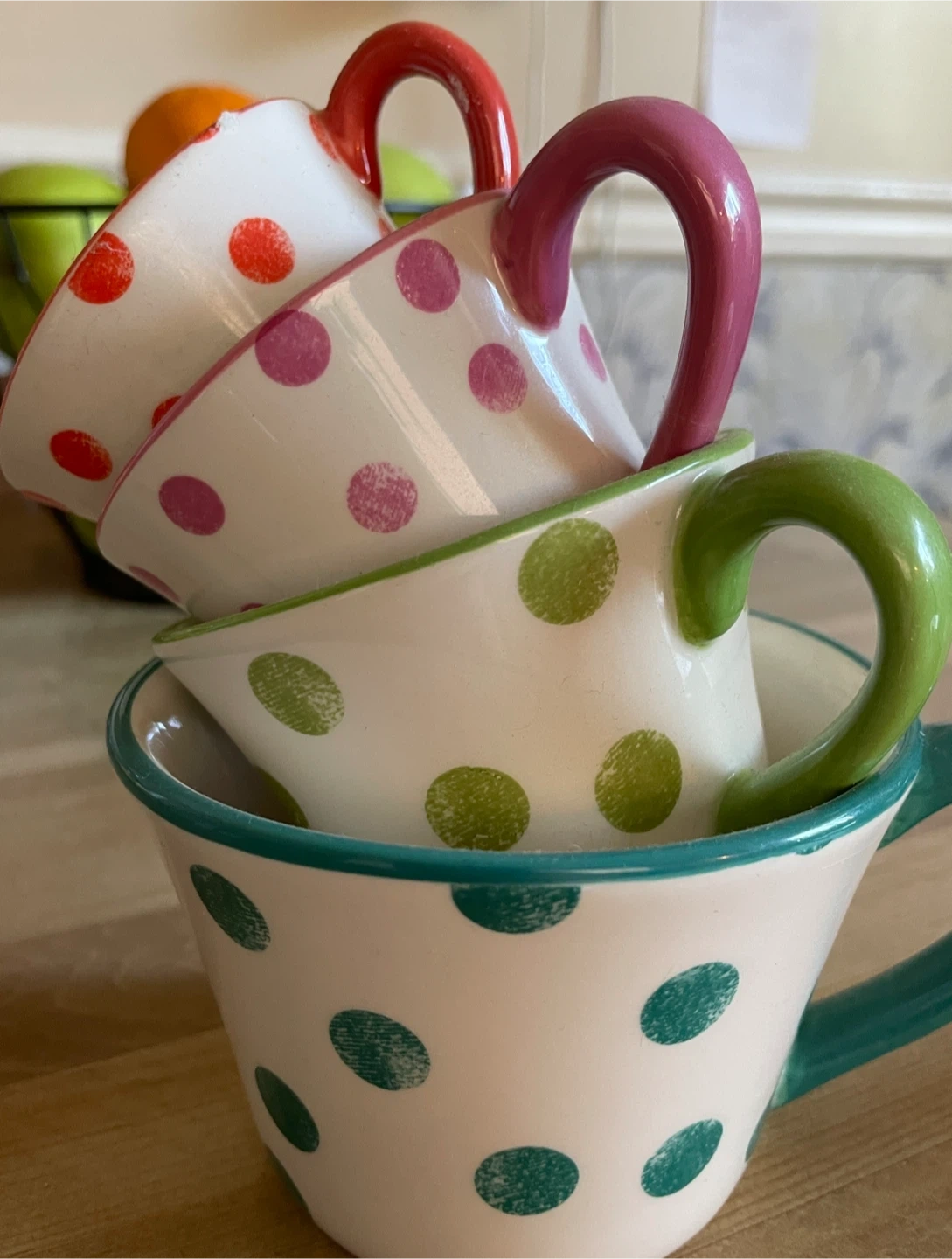 Here's a set of three adorable polka dot tea cup measuring cups!
