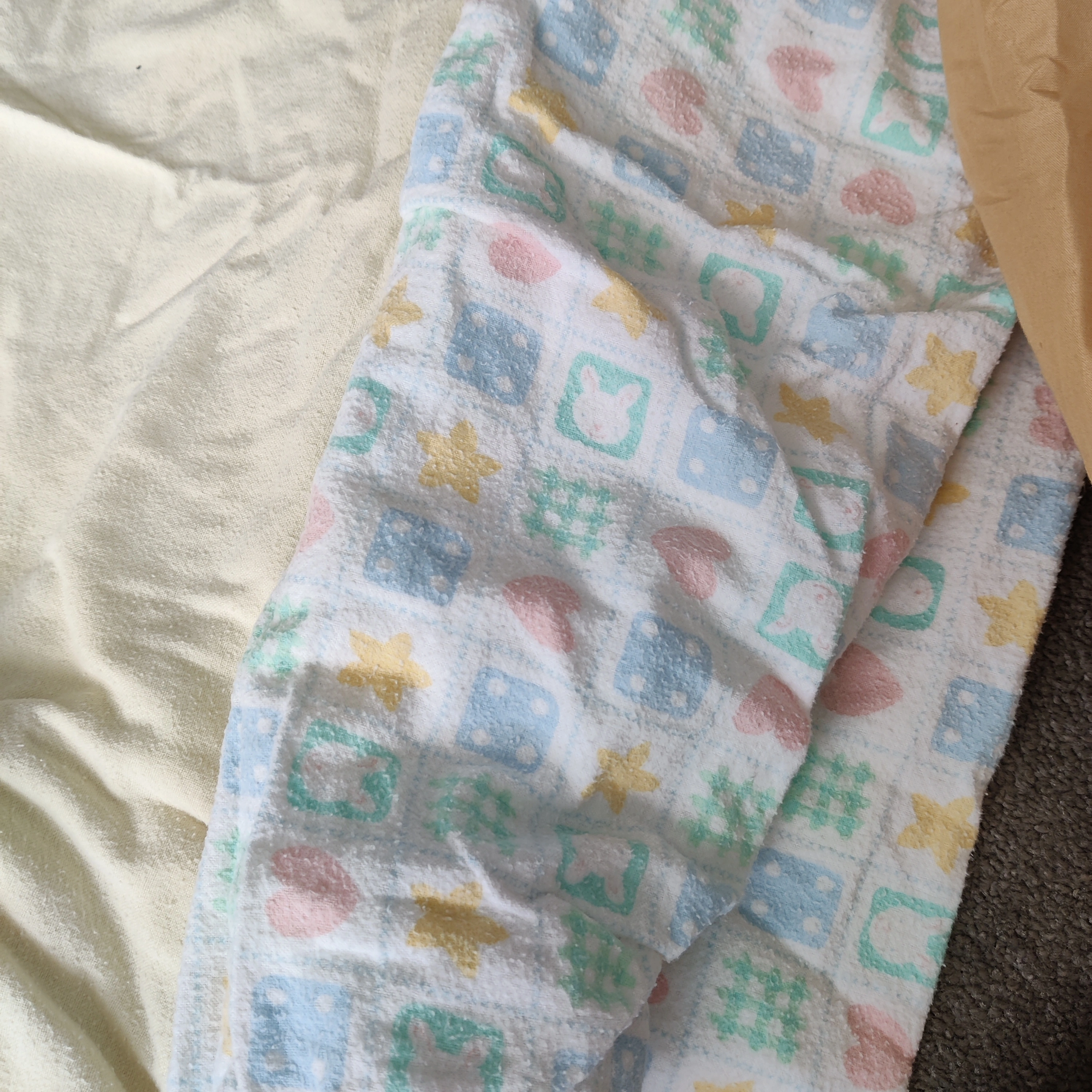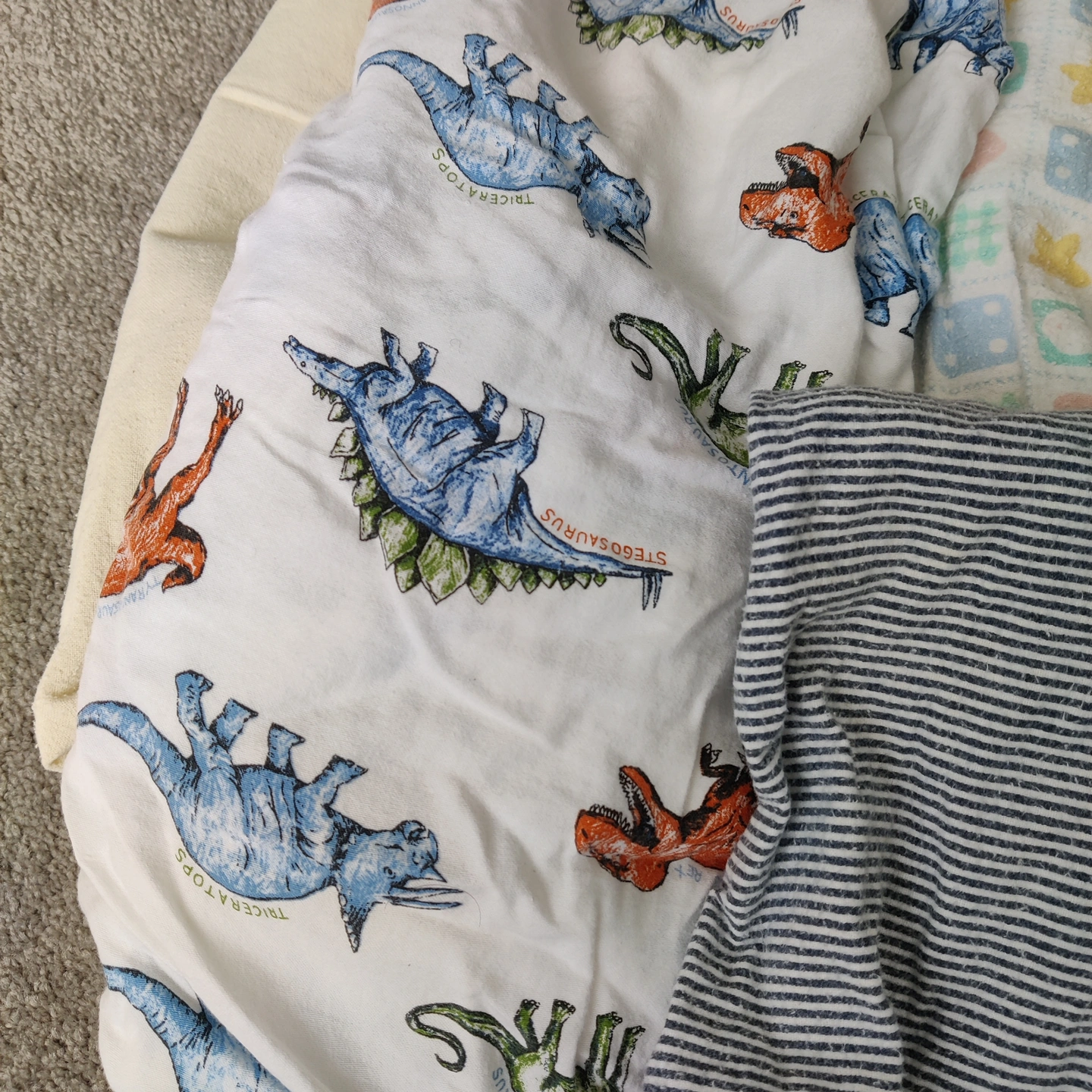 Pen marks on plain yellow and orange ones Others are in good condition Plain ones Dinosaur print Animal print Striped