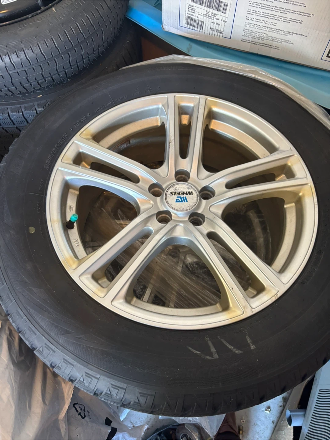 Selling a set of alloy wheels with tires. The tires are size 225/60R17. Bridgestone Blizzak winter tires. Direct fit to Subaru outback. 17x7 ET48. Bolt pattern 5x100. Whole set purchased from Costco.