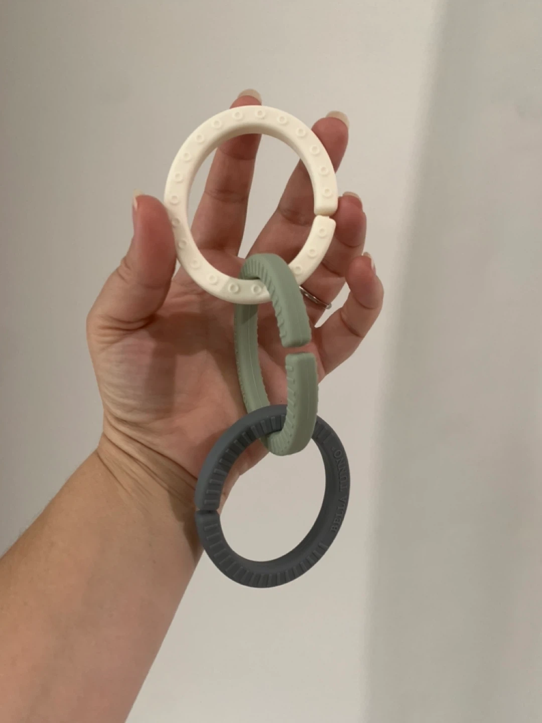 3 silicone links to attach to stroller for baby to play with/hold another toy.