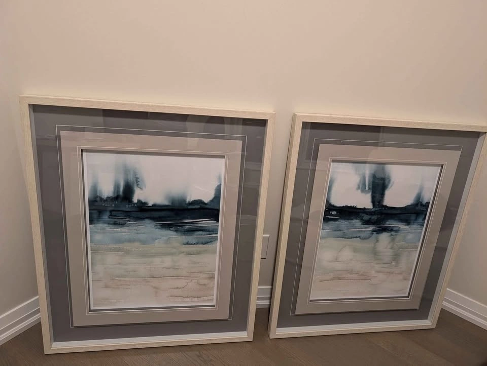 29Set of two framed abstract prints. Neutral colours and a modern design. 31.5" x 37.5"