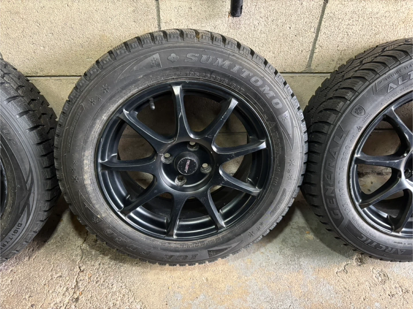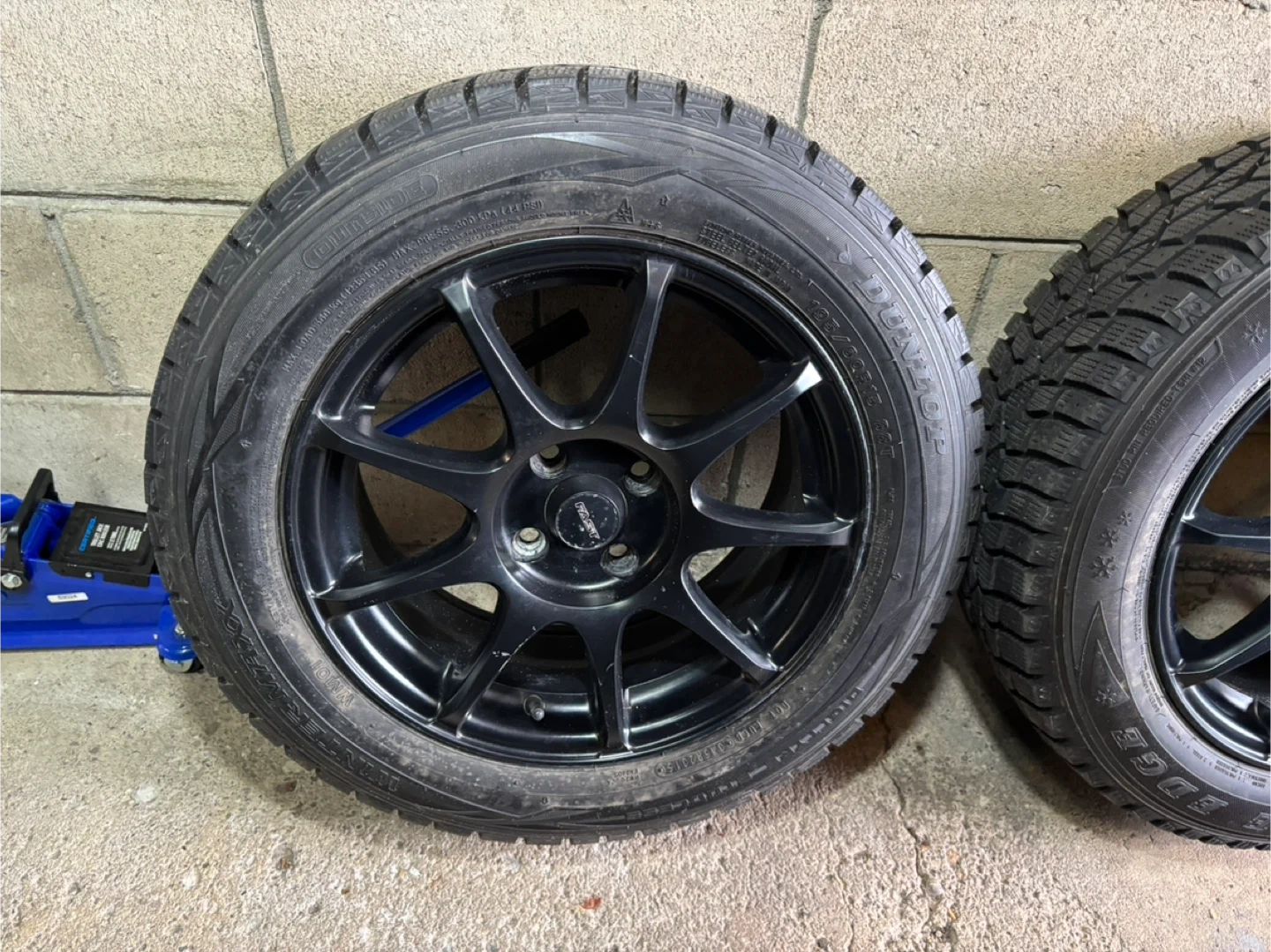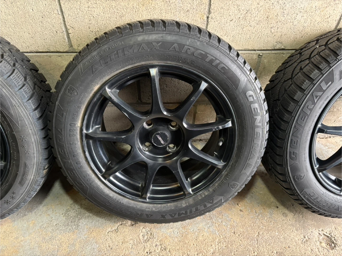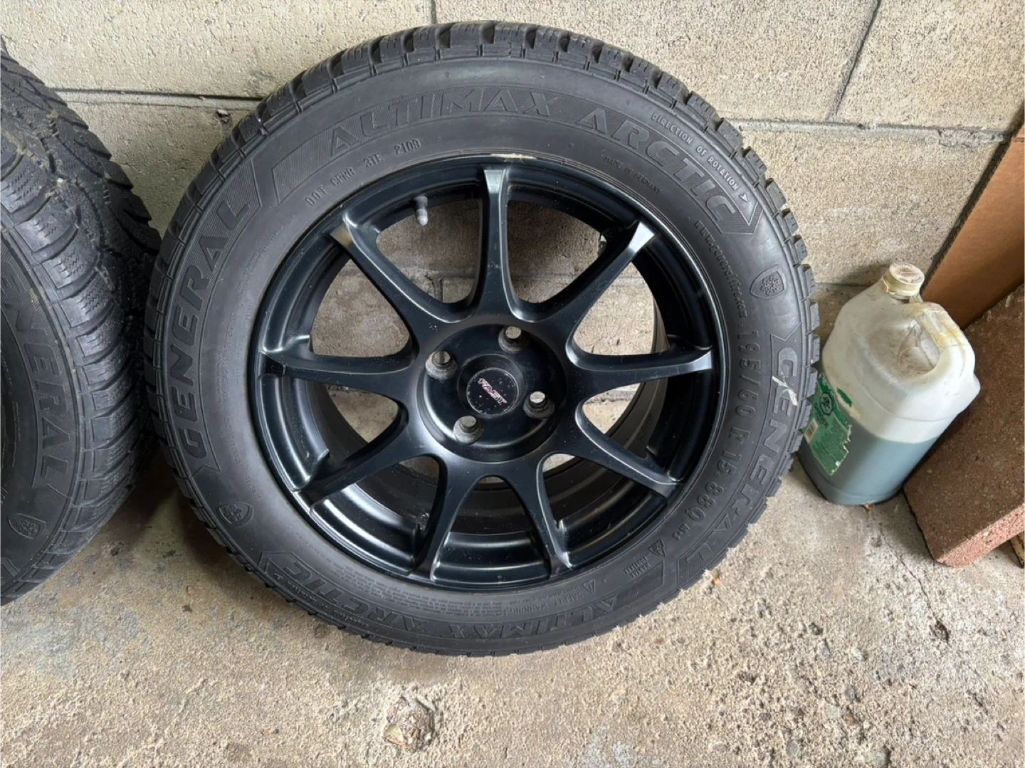1015” fast wheels 4x100 195/60/15 winter with lots of tread all wheels straight - no bends