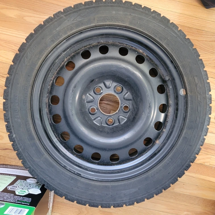0Selling 4 winter tires mounted on a steel rims. 225/50 R17 5x114.3mm ran for one season and ready to go for this winter season!
