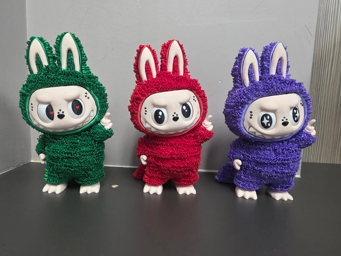 Here are some adorable Labubu Zimomo plush figures! They are in great condition and would make a wonderful addition to any collection. Available in green, red, and purple. Rotatable eyes
