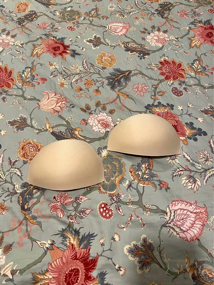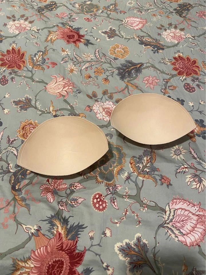 Brand new, never used. Ordered with a dress and didn’t end up needing to add them! For sewing into a dress to add a built-in bra. Nude/beige colour, for larger chests (D-F). Paid $60 from Flora & Lane, asking just $10.
