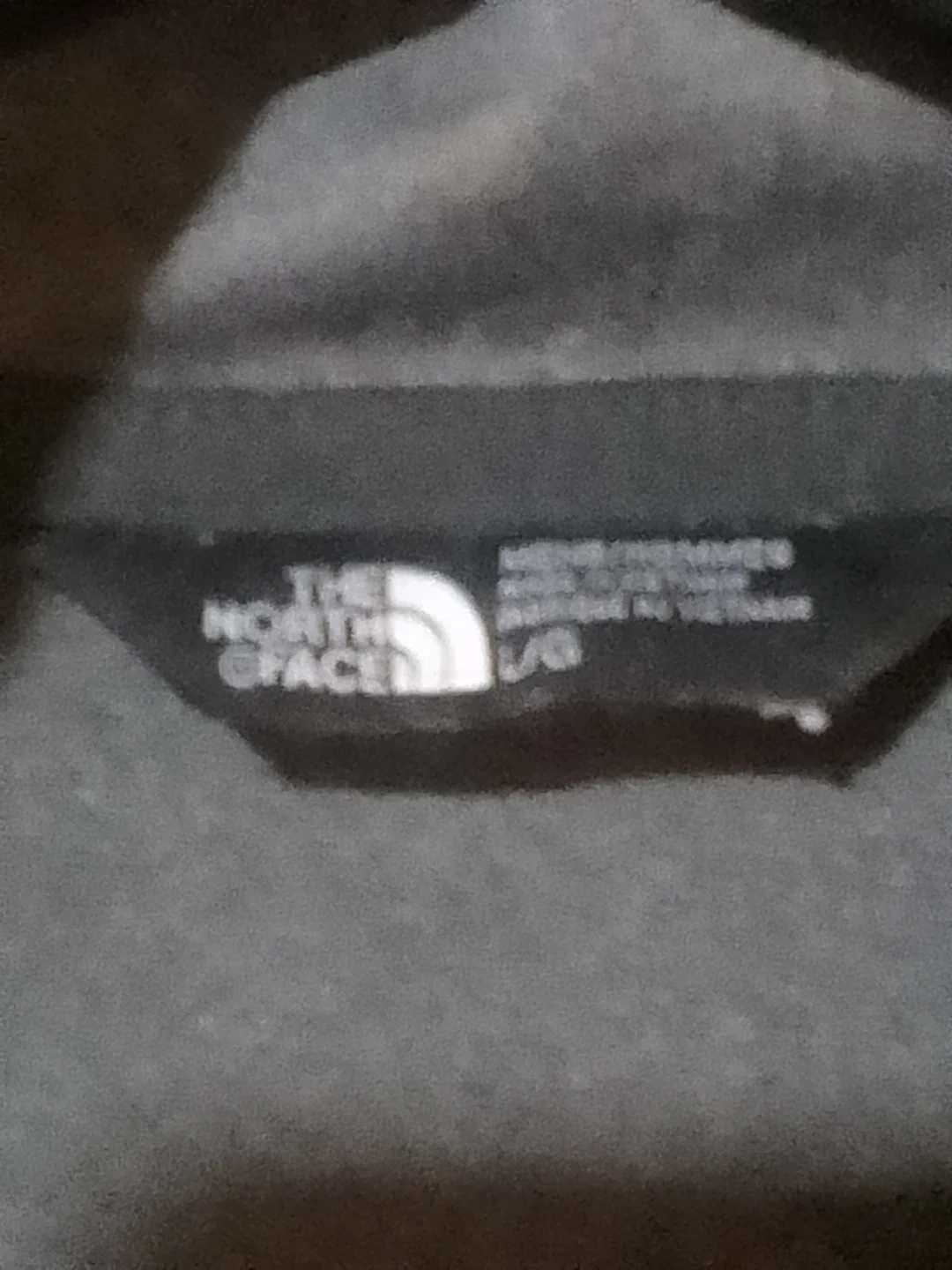 This is North Face men's full-zip jacket. It features a zipper closure and two inside pockets. It's a grey colour. Mens Large