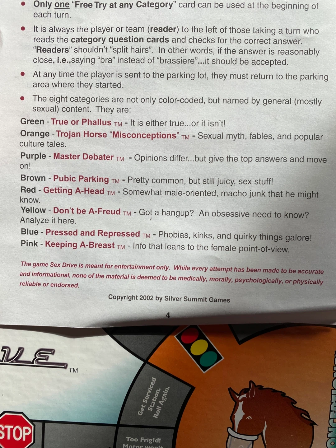 87Selling the Sex Drive adult board game! This game is for 2 to 6 players or teams and includes all the equipment needed for a fun night. The game includes a playing board, one 12-sided die, 300 category cards, and more. Get ready for a hilarious and exciting game night!