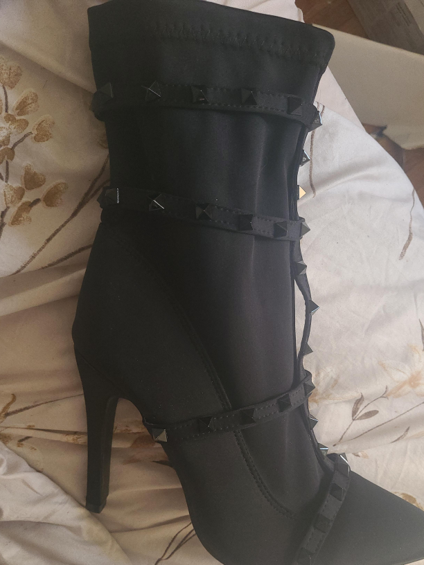 These black studded boots are a stylish addition to any wardrobe! They're a size 7 and feature a sleek design with edgy stud detailing