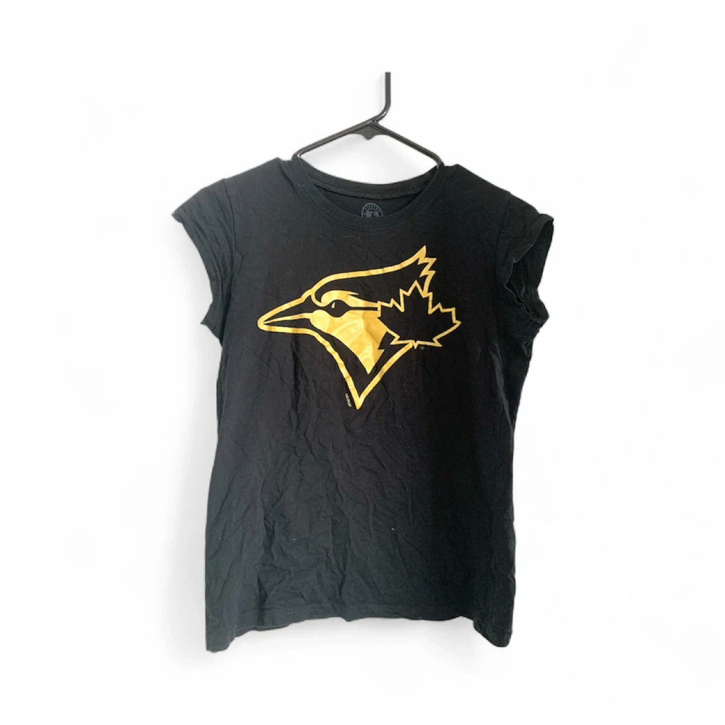 1000+Pick-up~cash~no holds. Thx! 💛~Look at my other listings for great bundle discounts. ~~~~~ Selling a Unique Black and Gold Toronto Blue Jays fitted t-shirt. It features the Blue Jays logo in Gold. Super soft and comfortable, made of 100% cotton. ➡️ OFFICIAL MERCHANDISE! Fashionistas, you can now cheers on your team without having to wear shapeless masculine blue team clothing, and still looking hot! ❗️Only worn once! Will be cleaned, hence it’s wrinkly now (just wanted to post it asap to give a chance to someone to wear it tonight for the game)! Perfect condition! Intact Gold Logo!