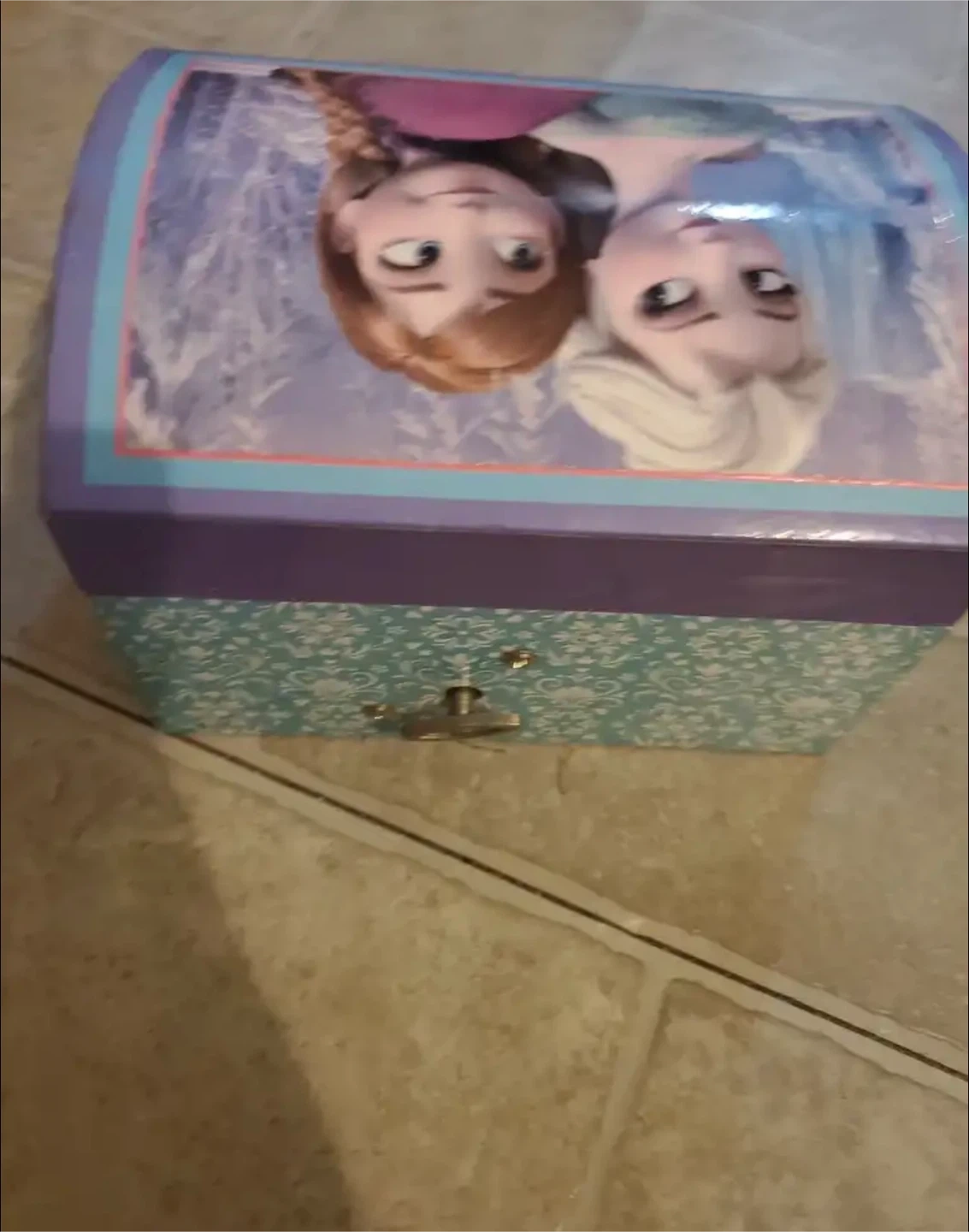 Selling a cute Disney Frozen musical jewelry box! It features Anna and Elsa on the top and plays music when opened. Perfect for storing little treasures