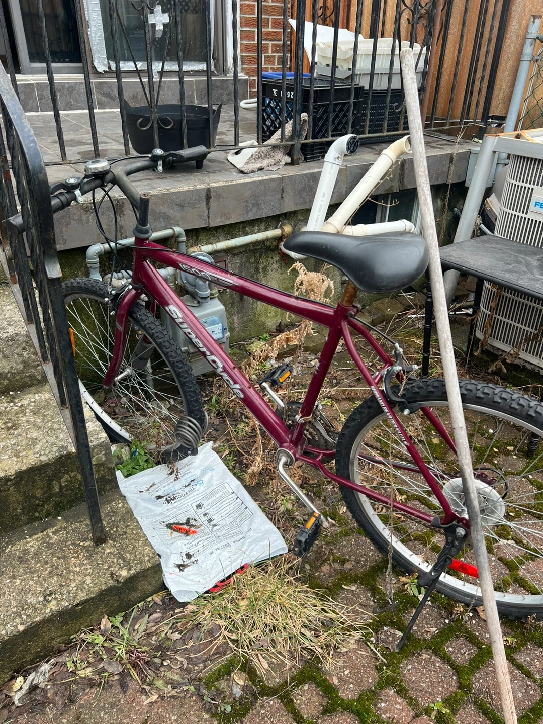 Used Super Cycle bicycle in a burgundy colour.
