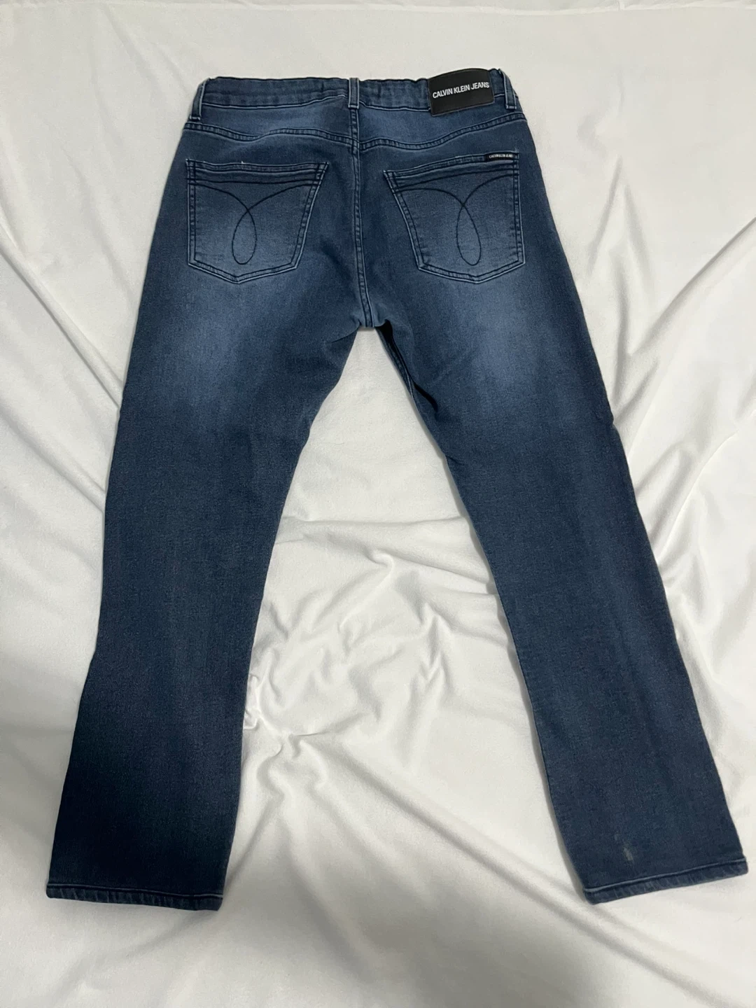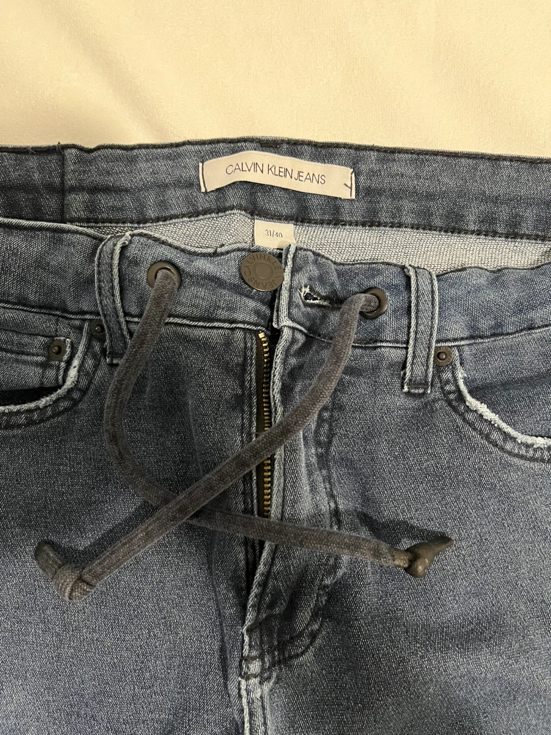 Calvin Klein Jeans drawstring waist denim pants. Size 31/40. Blue wash.
