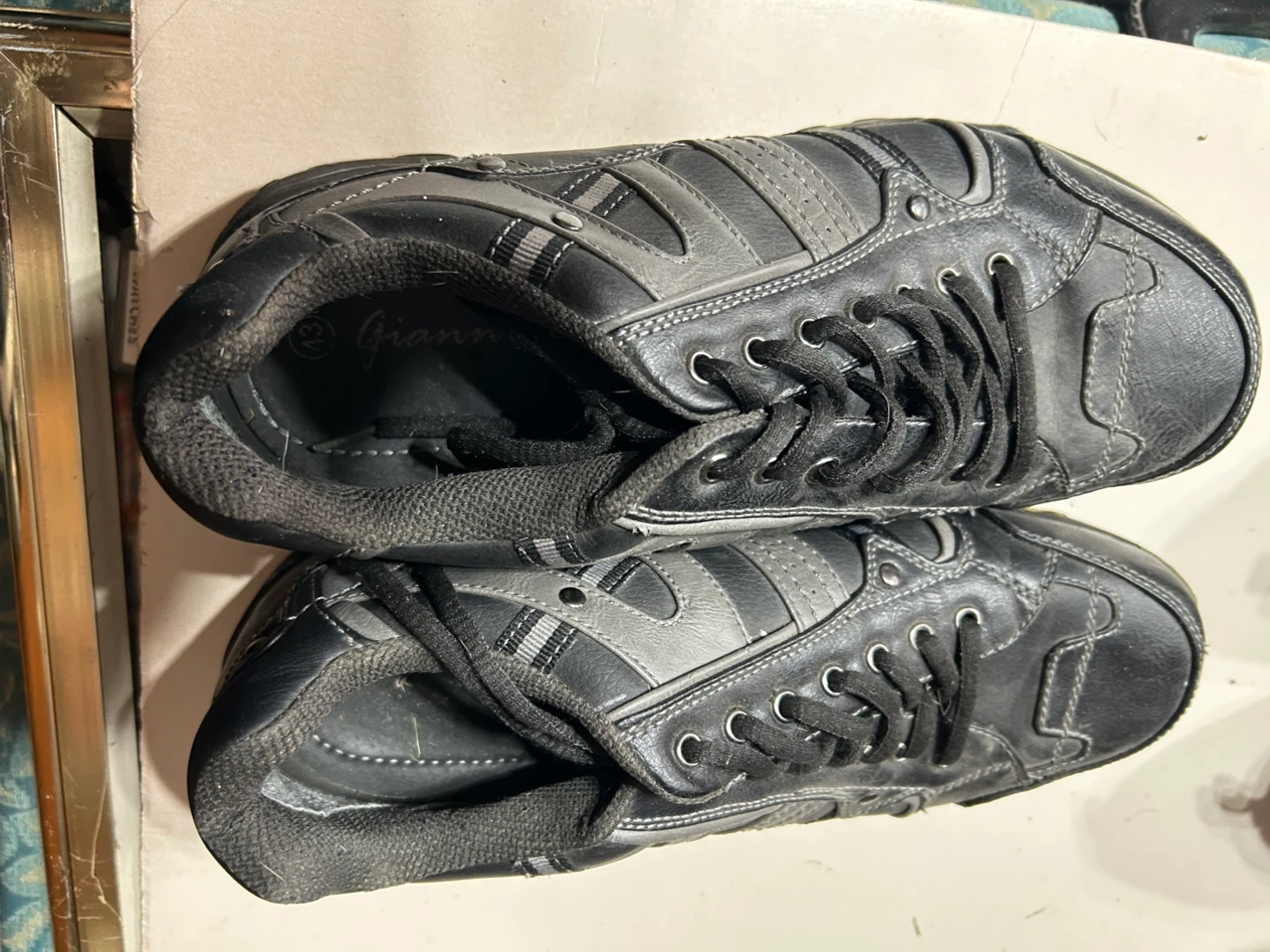Here are some pre-owned Gianmarco 7 sneakers in a size 43. They're black and grey with a lace-up closure. These shoes are suitable for everyday wear. This pair comes with original laces.
