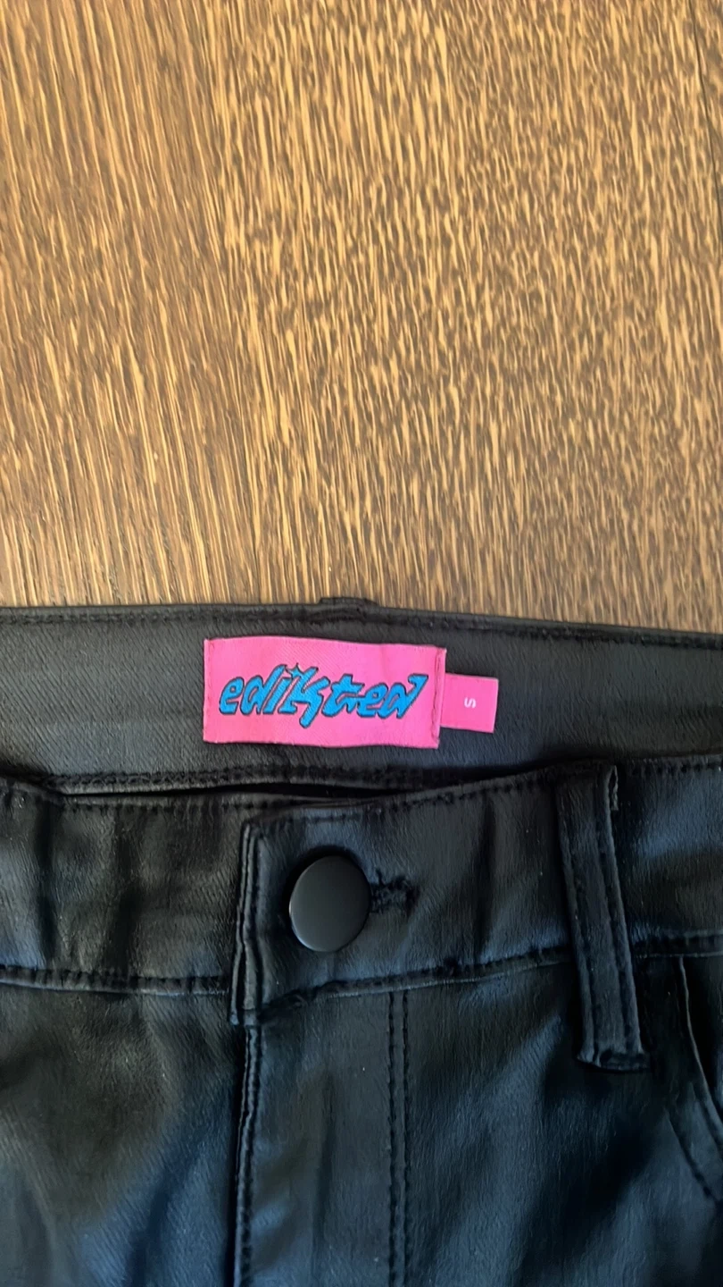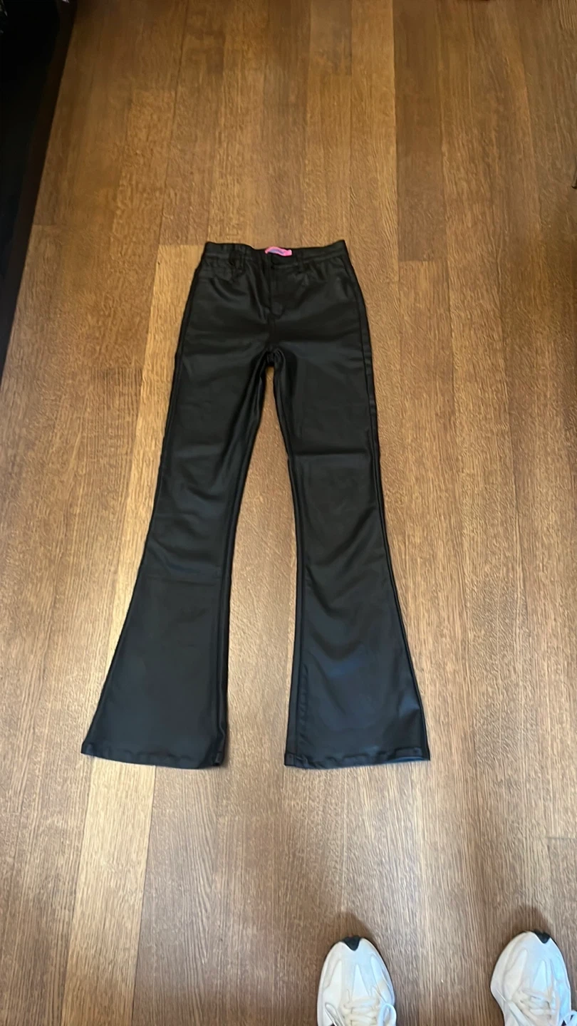 Black faux leather flare pants from Edikted . Size Small (fits like a 2) High-waisted with a button and zip closure. Great condition