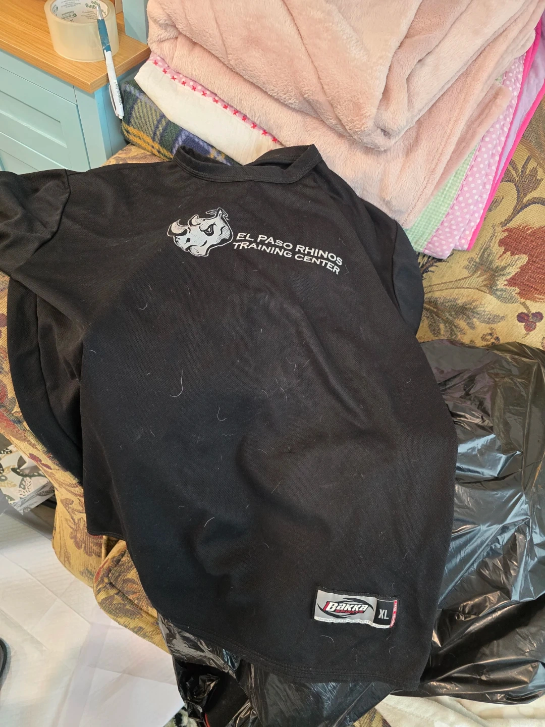 This is a black Bakka Sports t-shirt from the El Paso Rhinos Training Center. It's a size XL and made of breathable fabric. Perfect for training or casual wear!