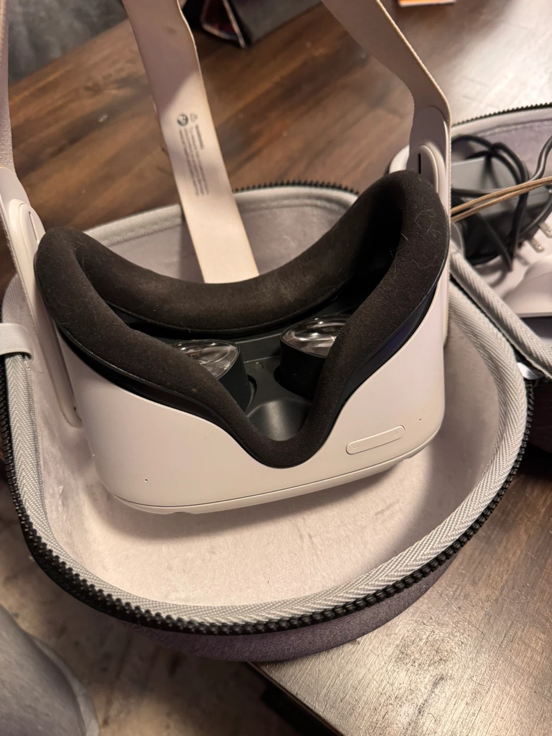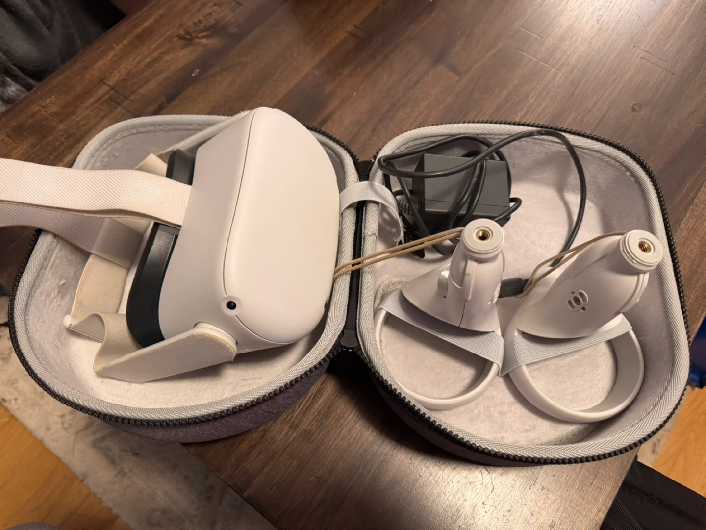 Meta Quest 2 VR 256gb headset with controllers (extender kit on but can not find extenders) and carrying case. Includes headset, two controllers with wrist straps, and charging cable. (Not original charger)Hard-shell case protects your gear. This VR system is ready for gaming and virtual experiences!