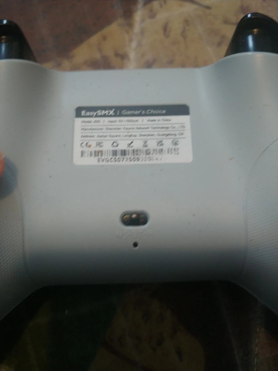 This is a white EasySMX wireless game controller. It's designed for PC via Bluetooth and Nintendo switch. It's a great option for PC gaming!