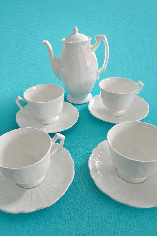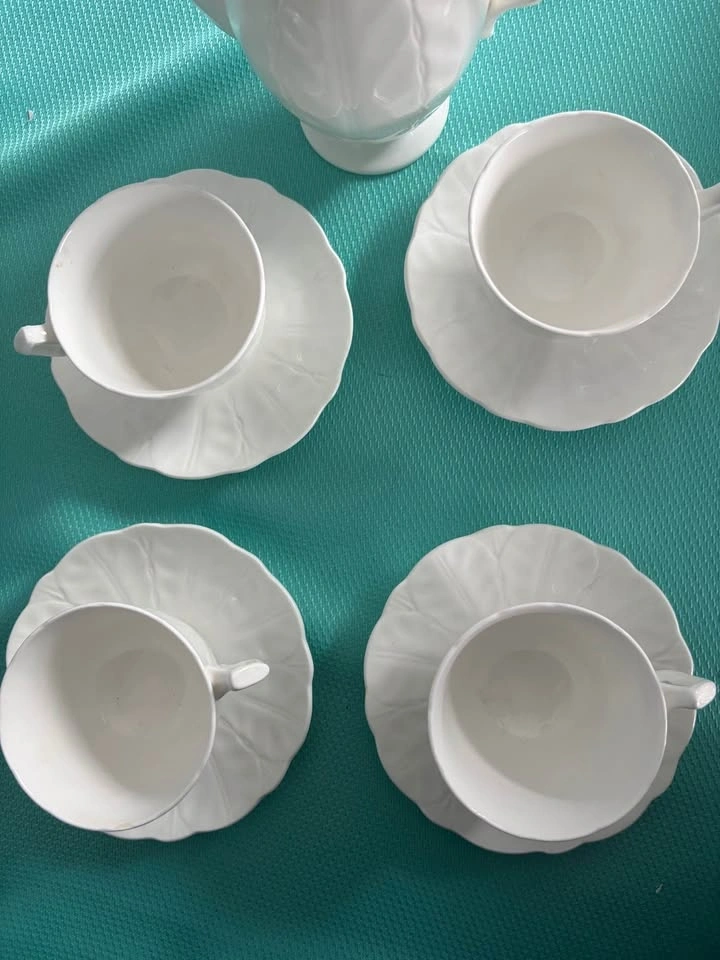 Aynsley Snow Crocus Teapot with 4 Cups & Saucers