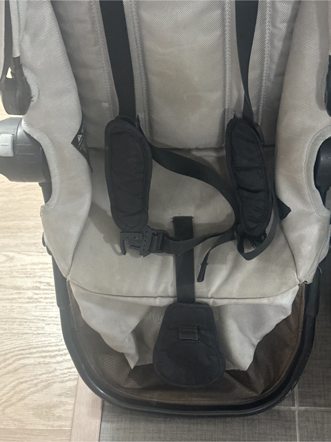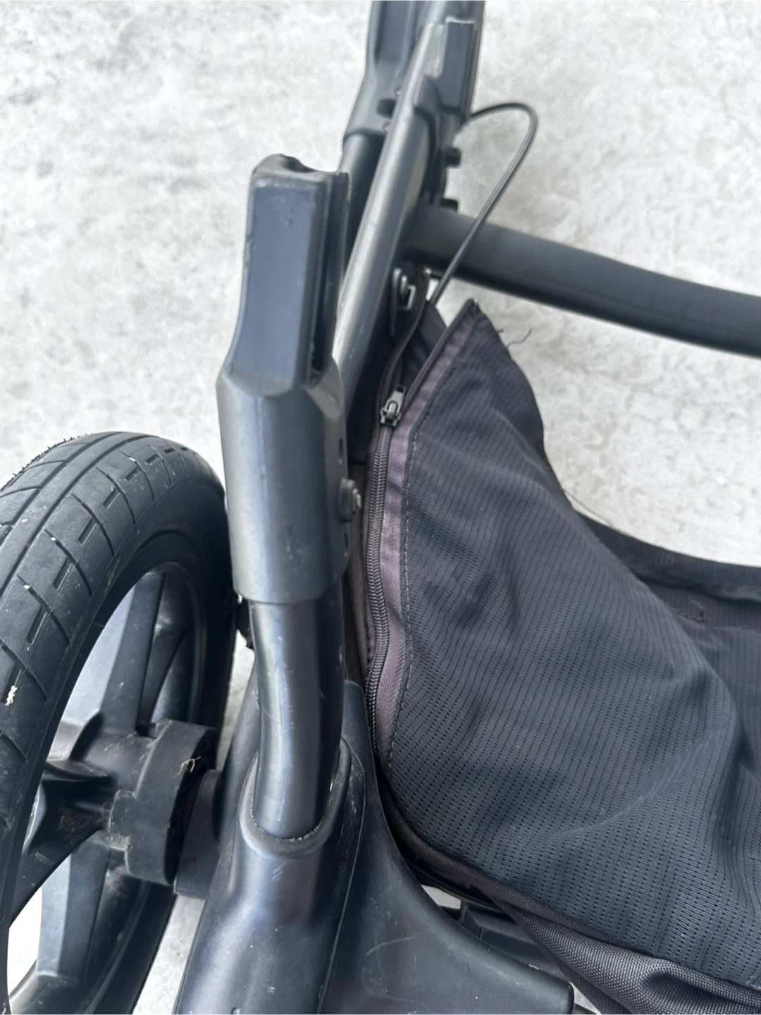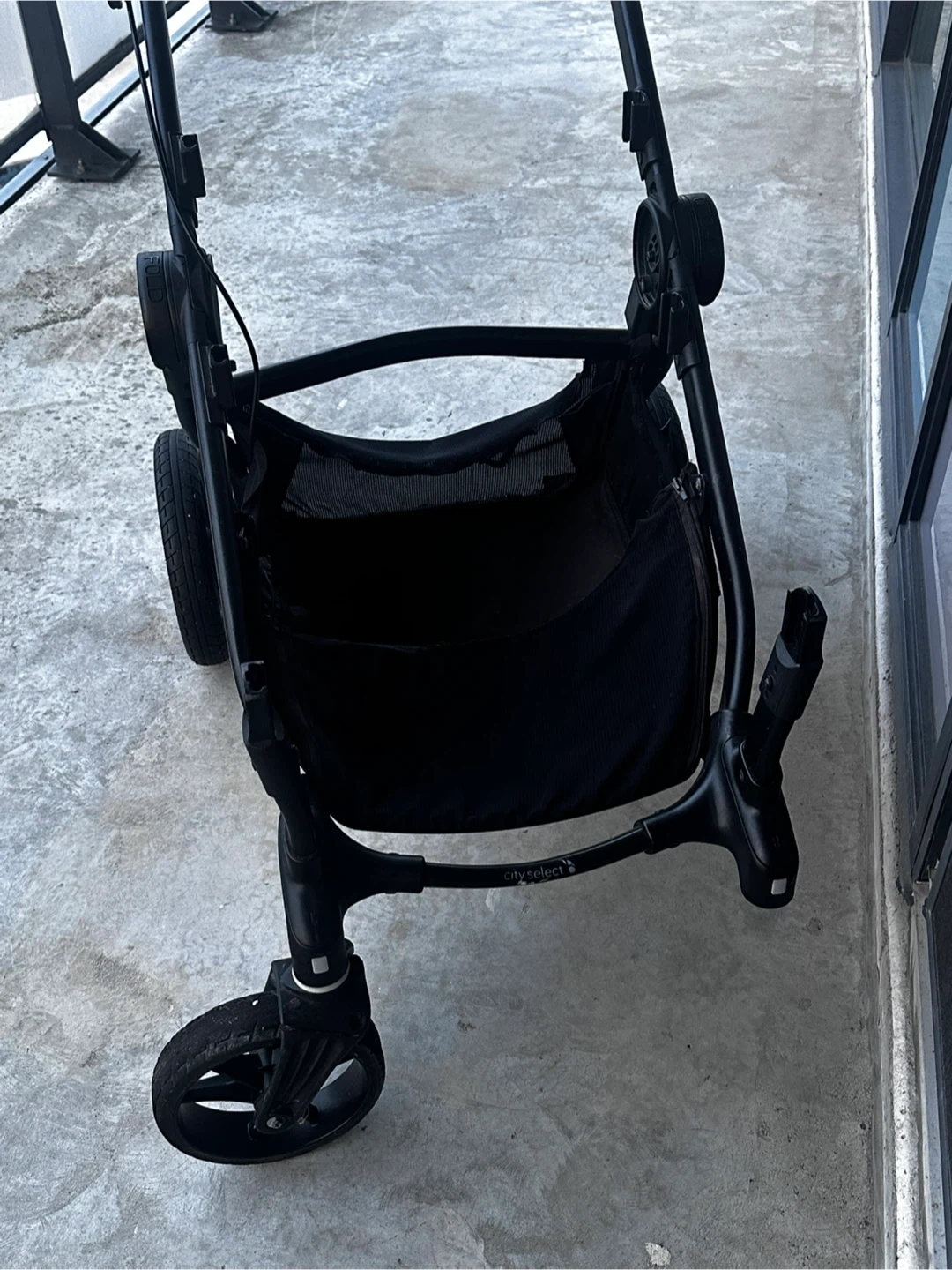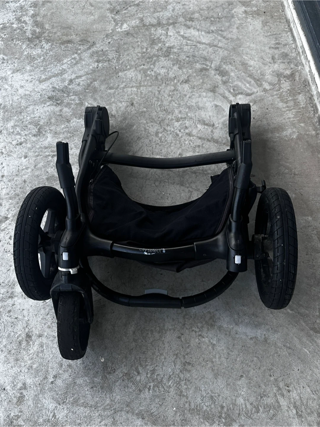 One front wheel is missing (we took it as a replacement for our other stroller). You can either use it for parts or would need to buy 1 front wheel.